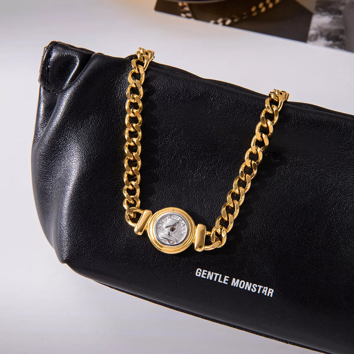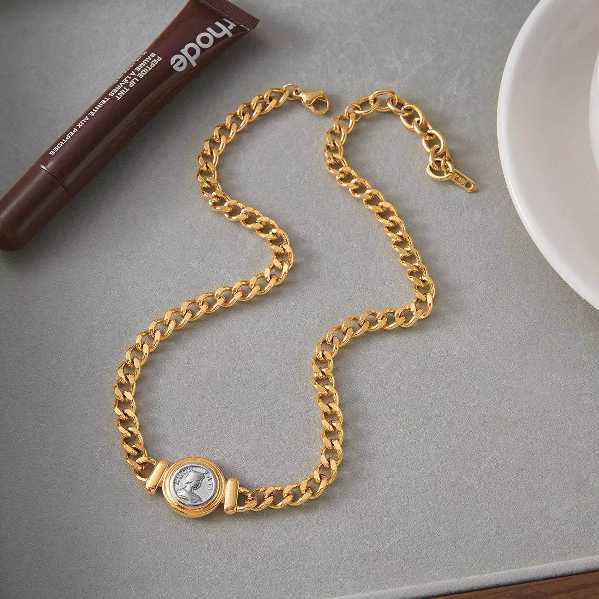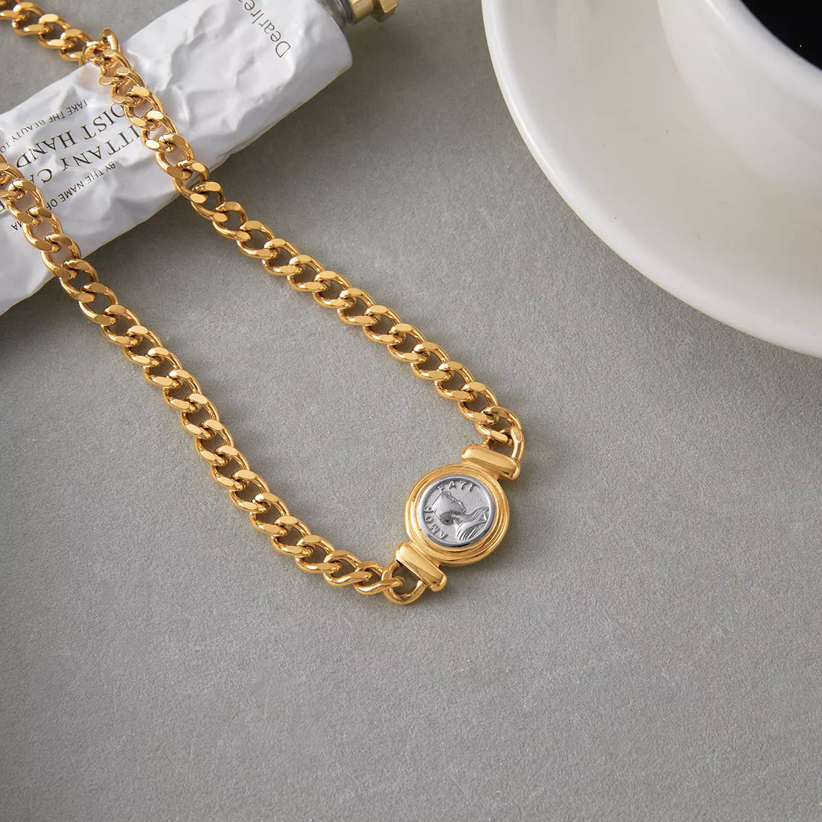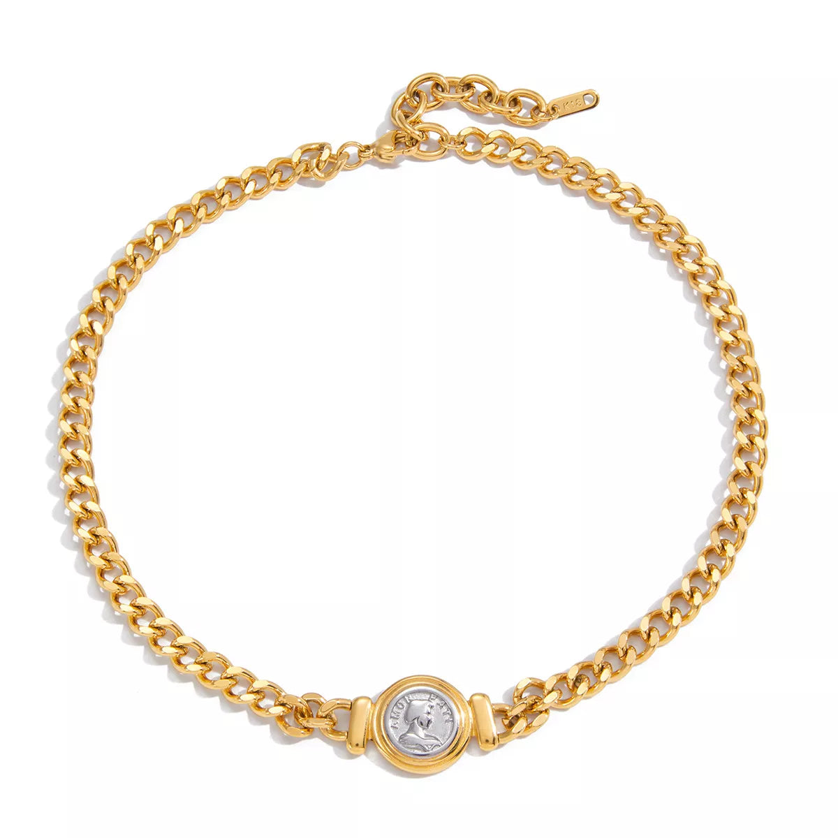 18K Gold-Plated Vintage Coin Charm Curb Chain Necklace