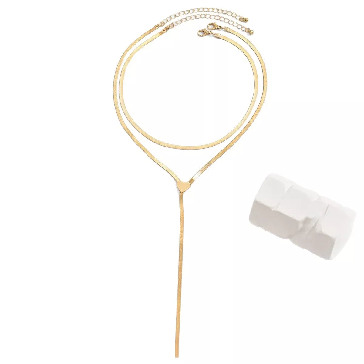 2 Piece 18K Gold-Plated Heart Necklace
