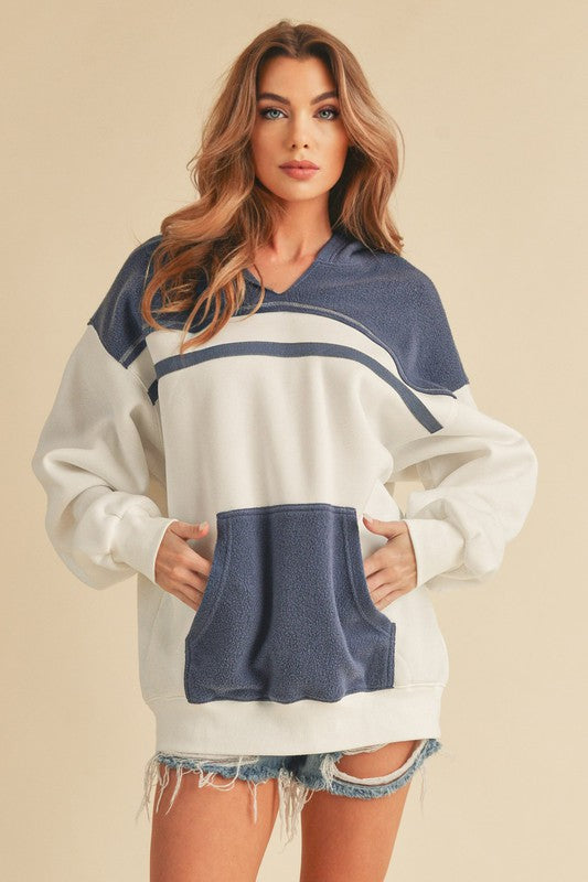 Aemi + Co Color Block Drop Shoulder Hoodie with Kangaroo Pocket