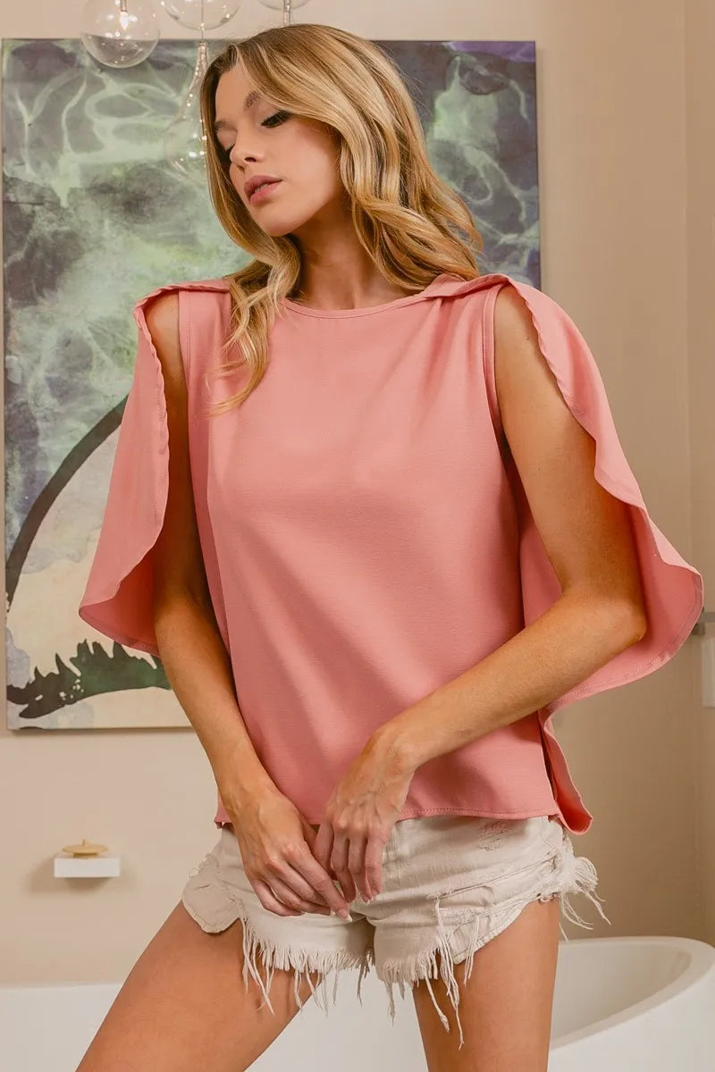 BiBi Woven Top With Fold Over Back Detail