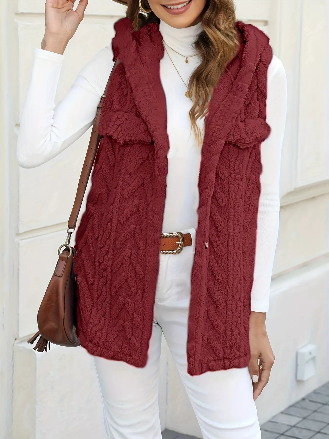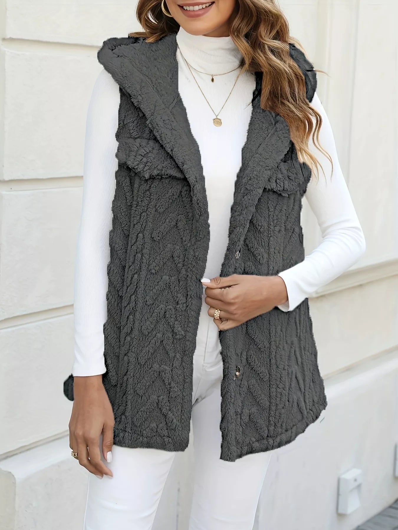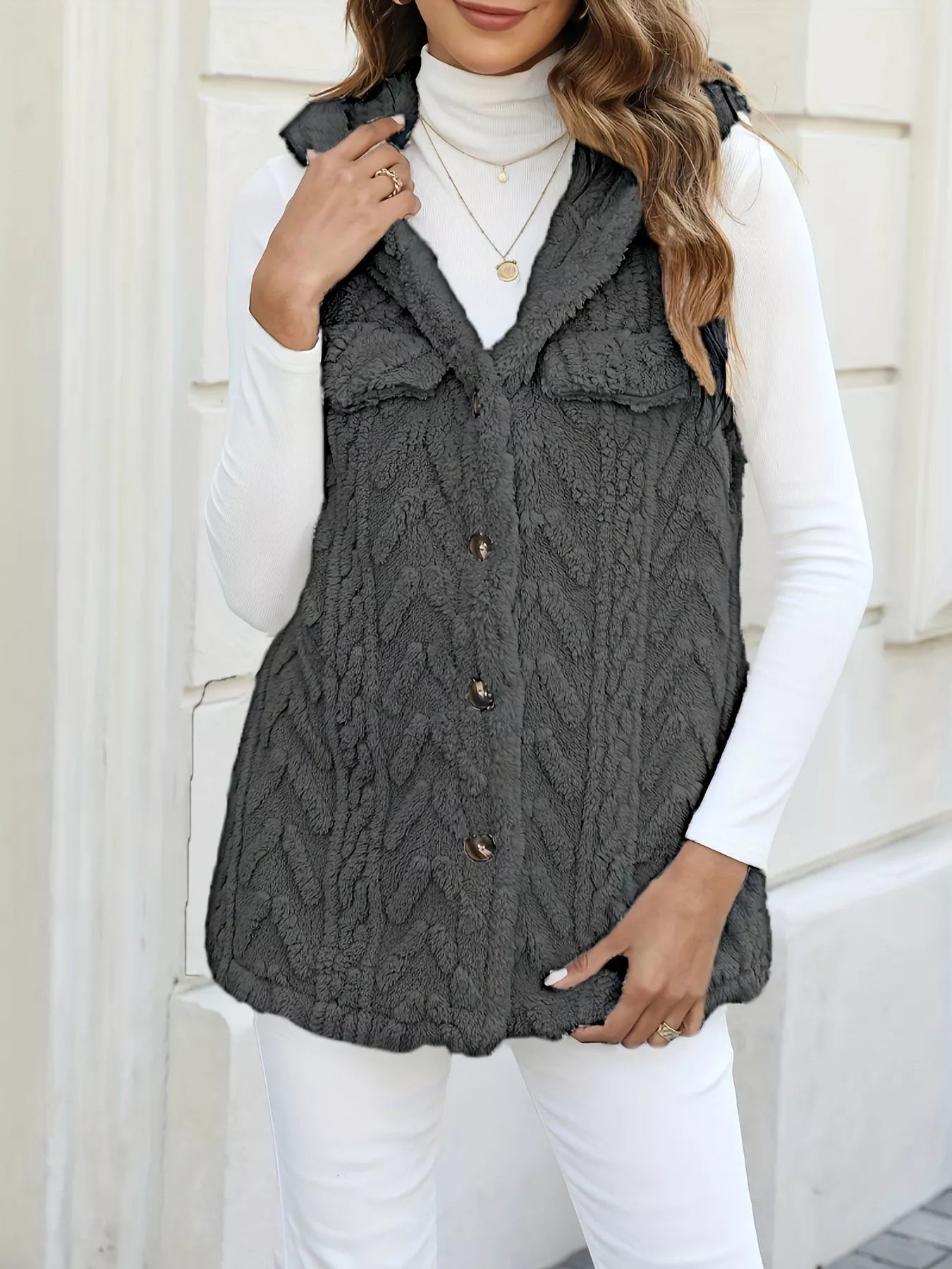 Button-Front Hooded Vest Coat
