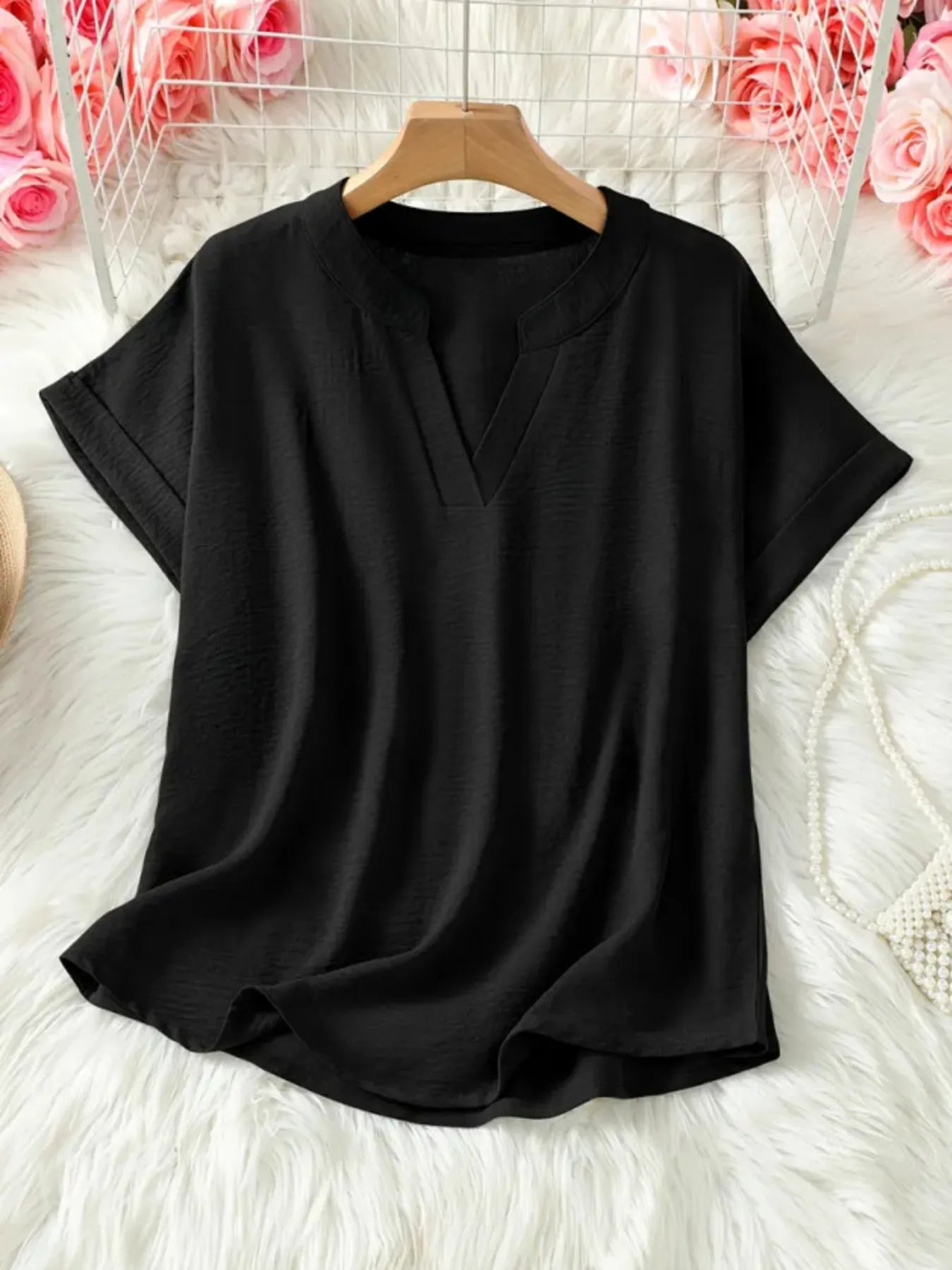 Casual Notched Short Sleeve Blouse