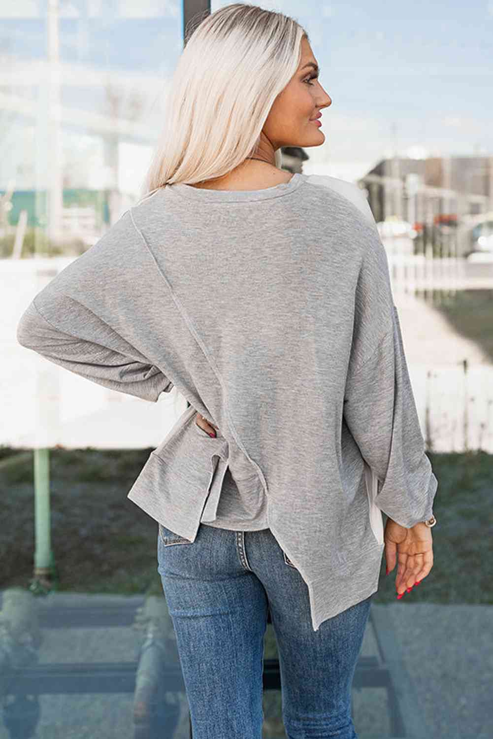 Color Block Exposed Seam Asymmetrical Sweatshirt