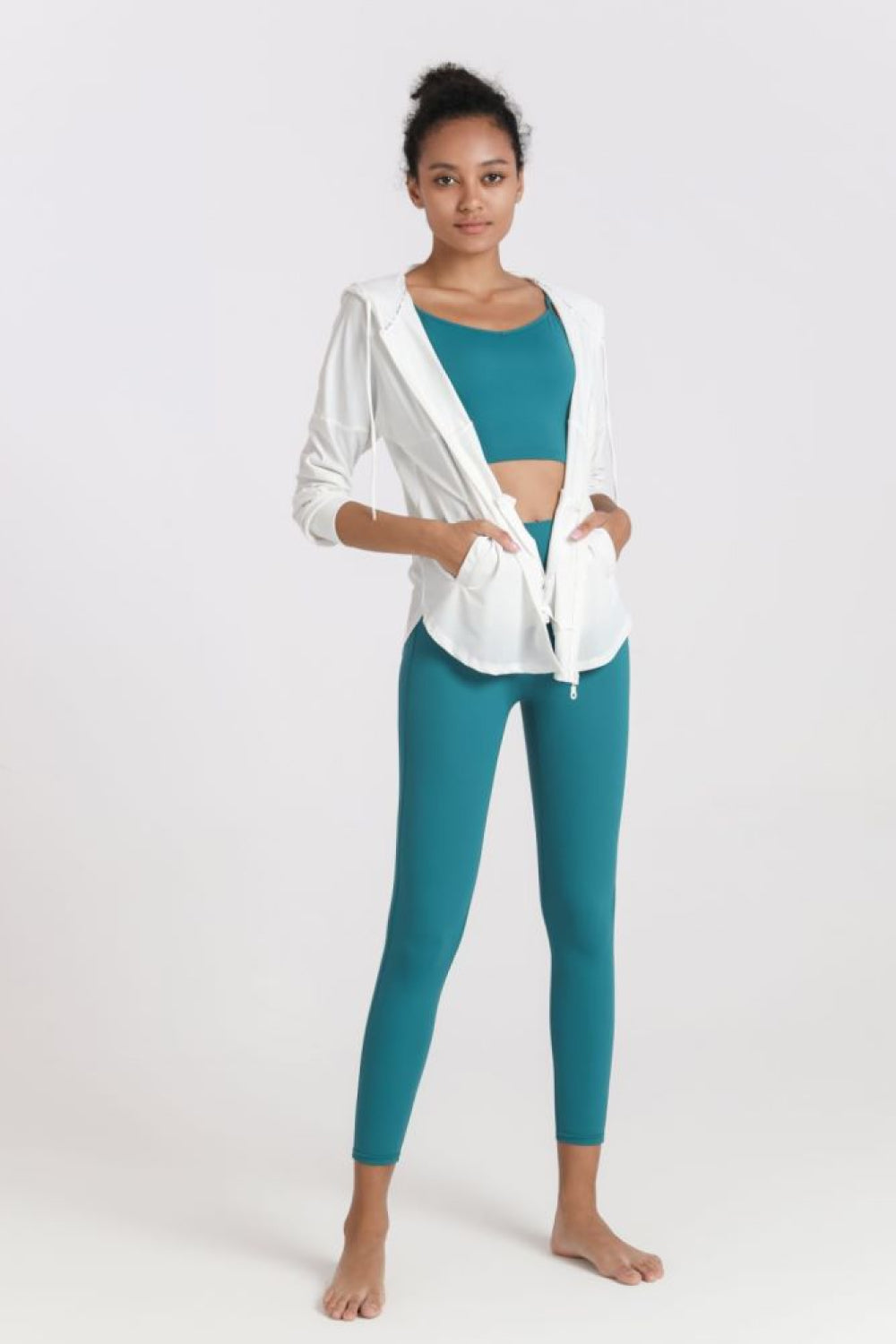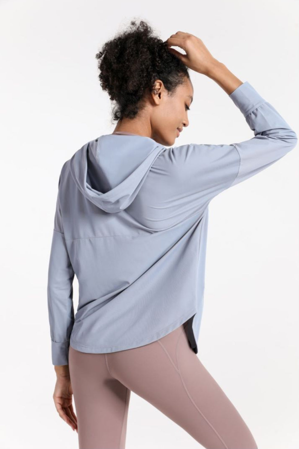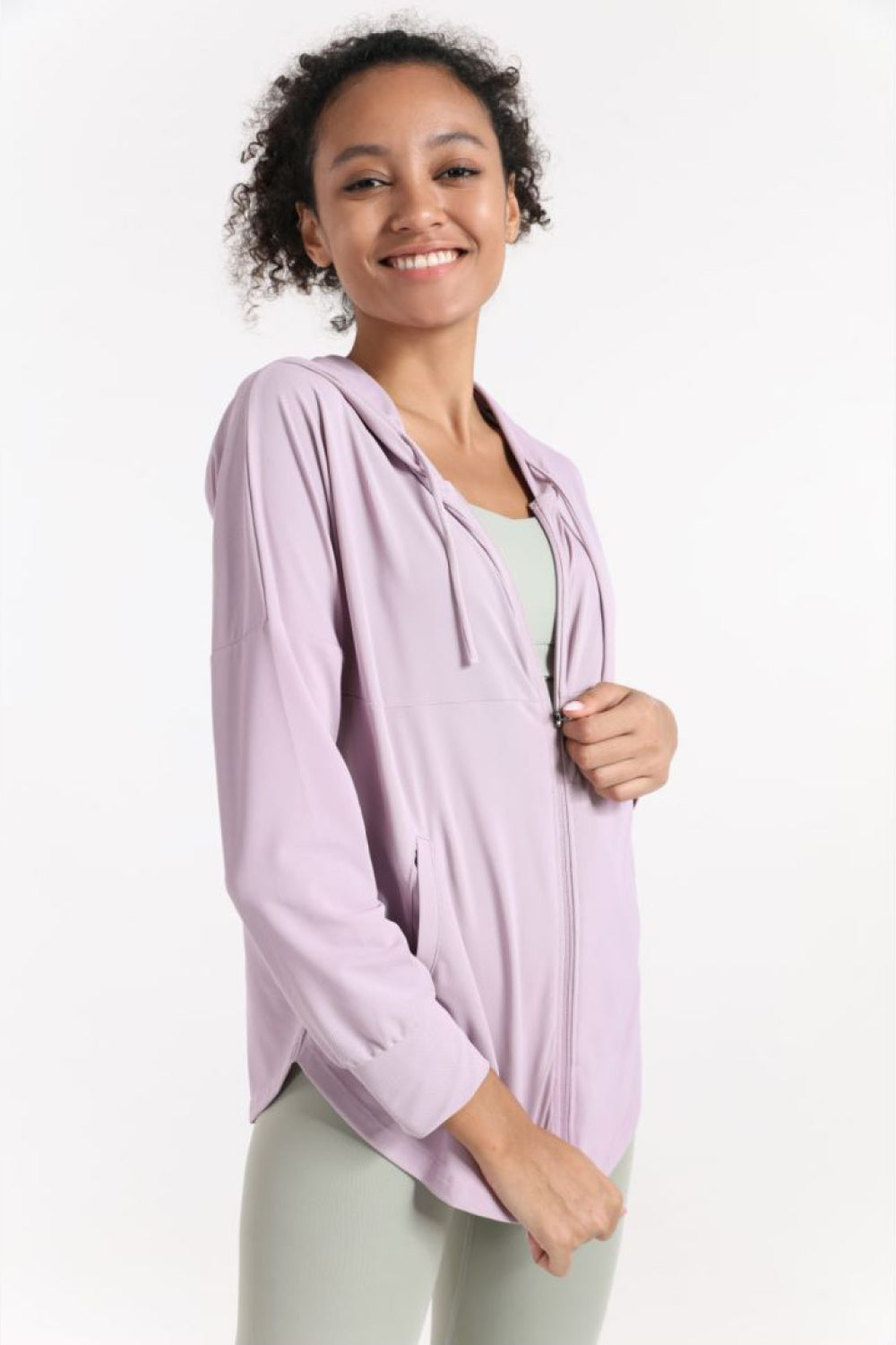 Curved Hem Drawstring Hooded Sports Jacket