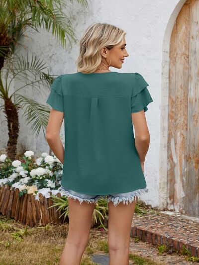 Cutout Round Neck Short Sleeve Blouse