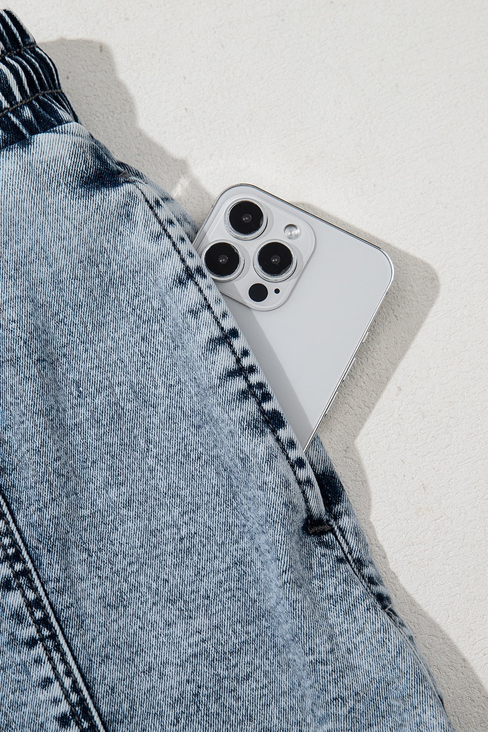 Drawstring High Waist Pocketed Denim Shorts