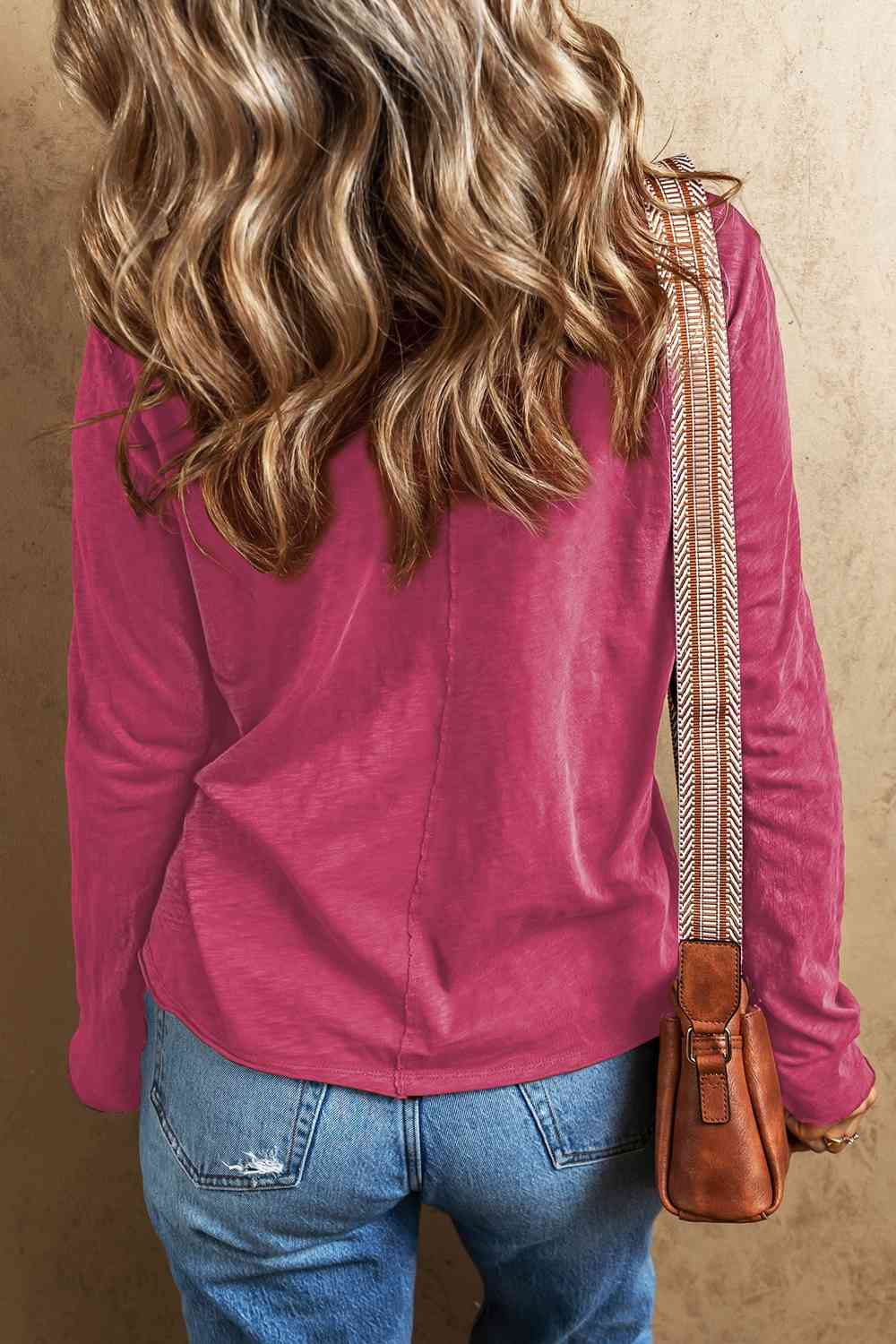 Exposed Seam V-Neck Long Sleeve T-Shirt
