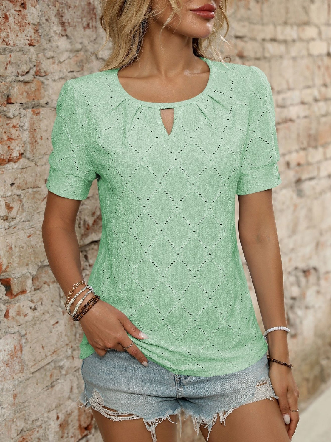 Eyelet Round Neck Short Sleeve Top