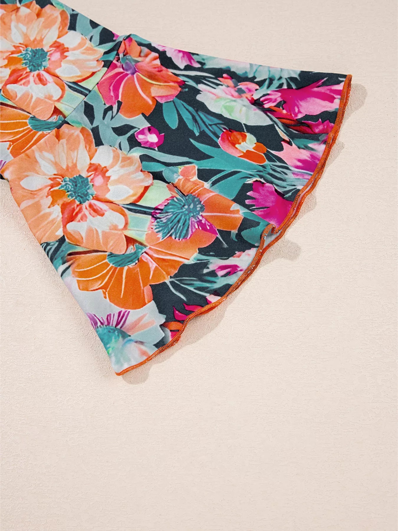 Floral 3/4 Flare Sleeve Tied Neck Blouse