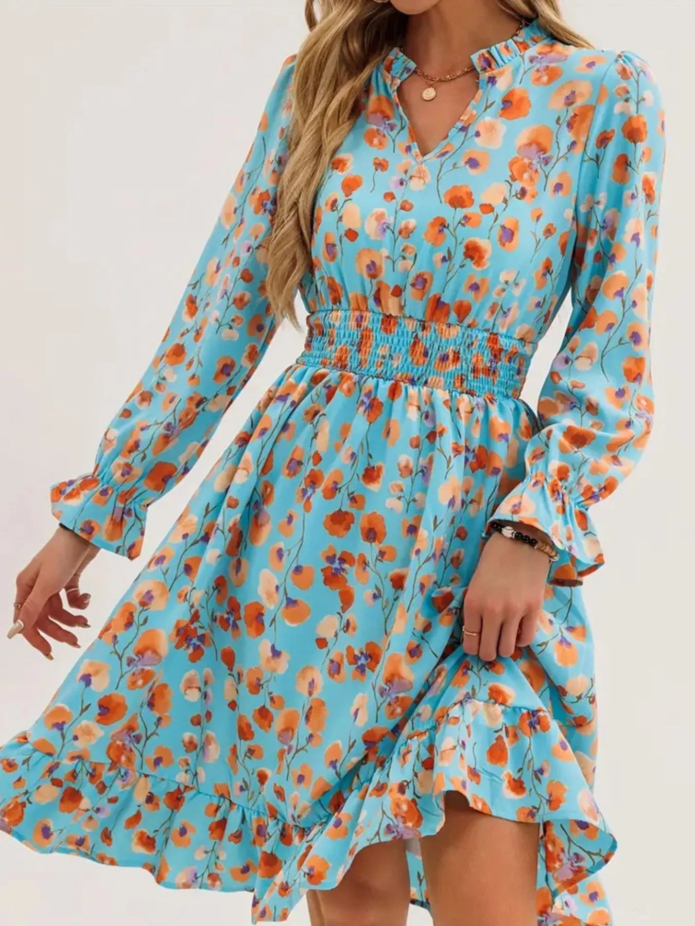 Floral Print Flounce Sleeve Ruffle Hem Dress