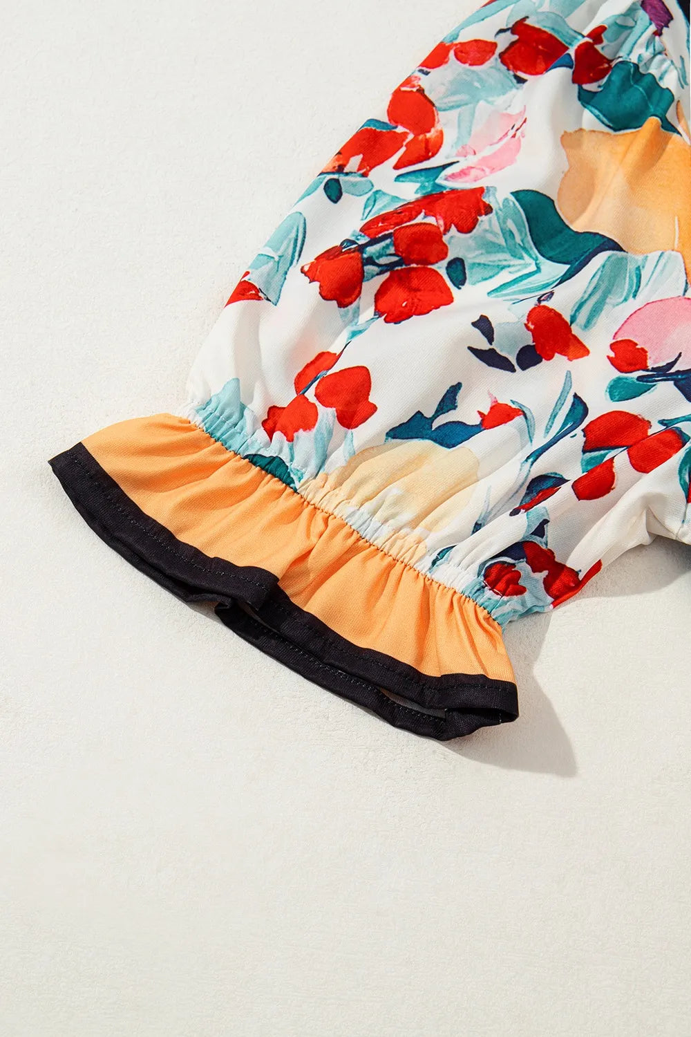 Floral Print Zipper Ruffled Short Sleeve High Waist Mini Dress