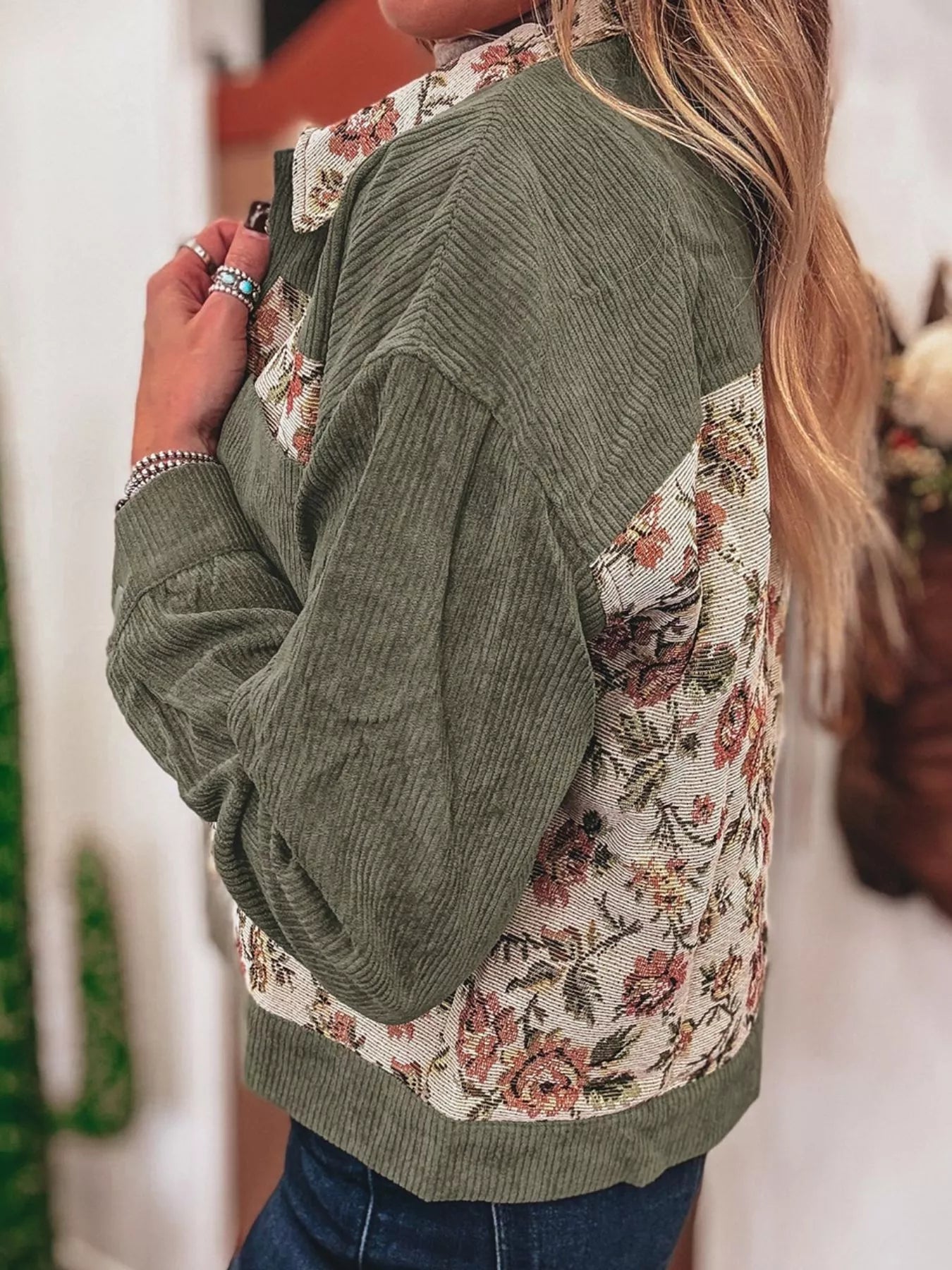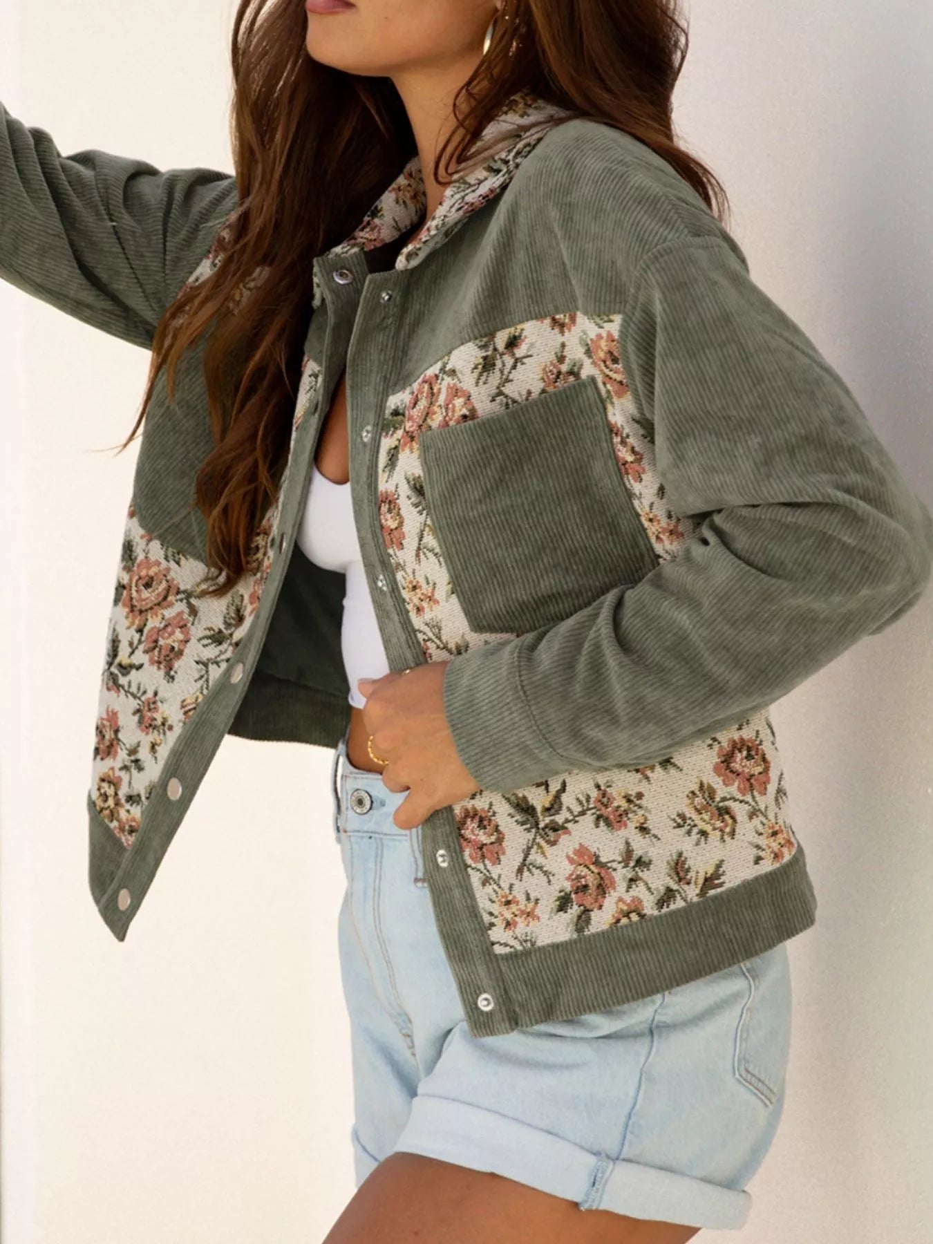 Floral Snap Down Corduroy Jacket