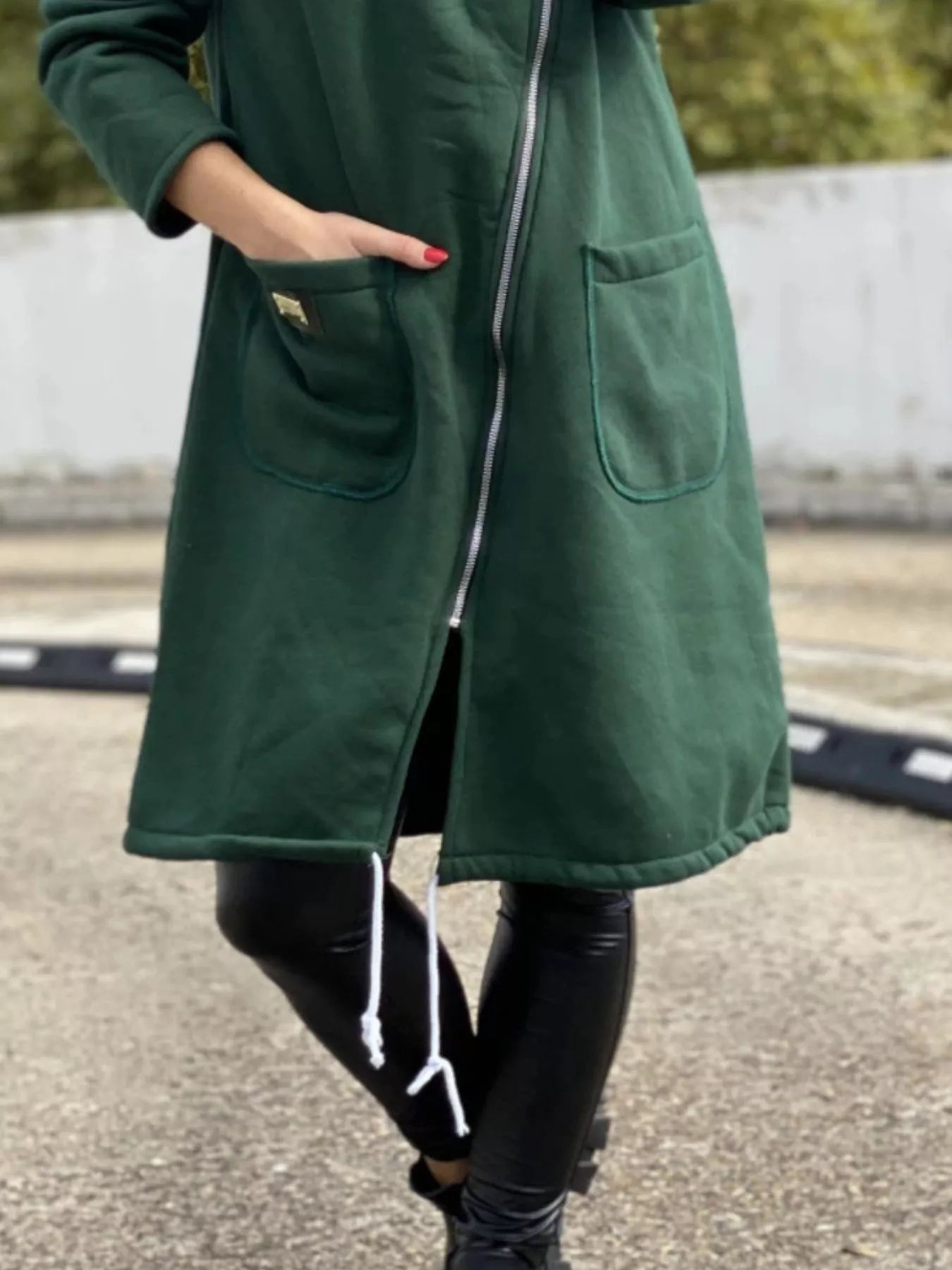 - Features:Basic style,Drawstring,Pocketed,Zipper