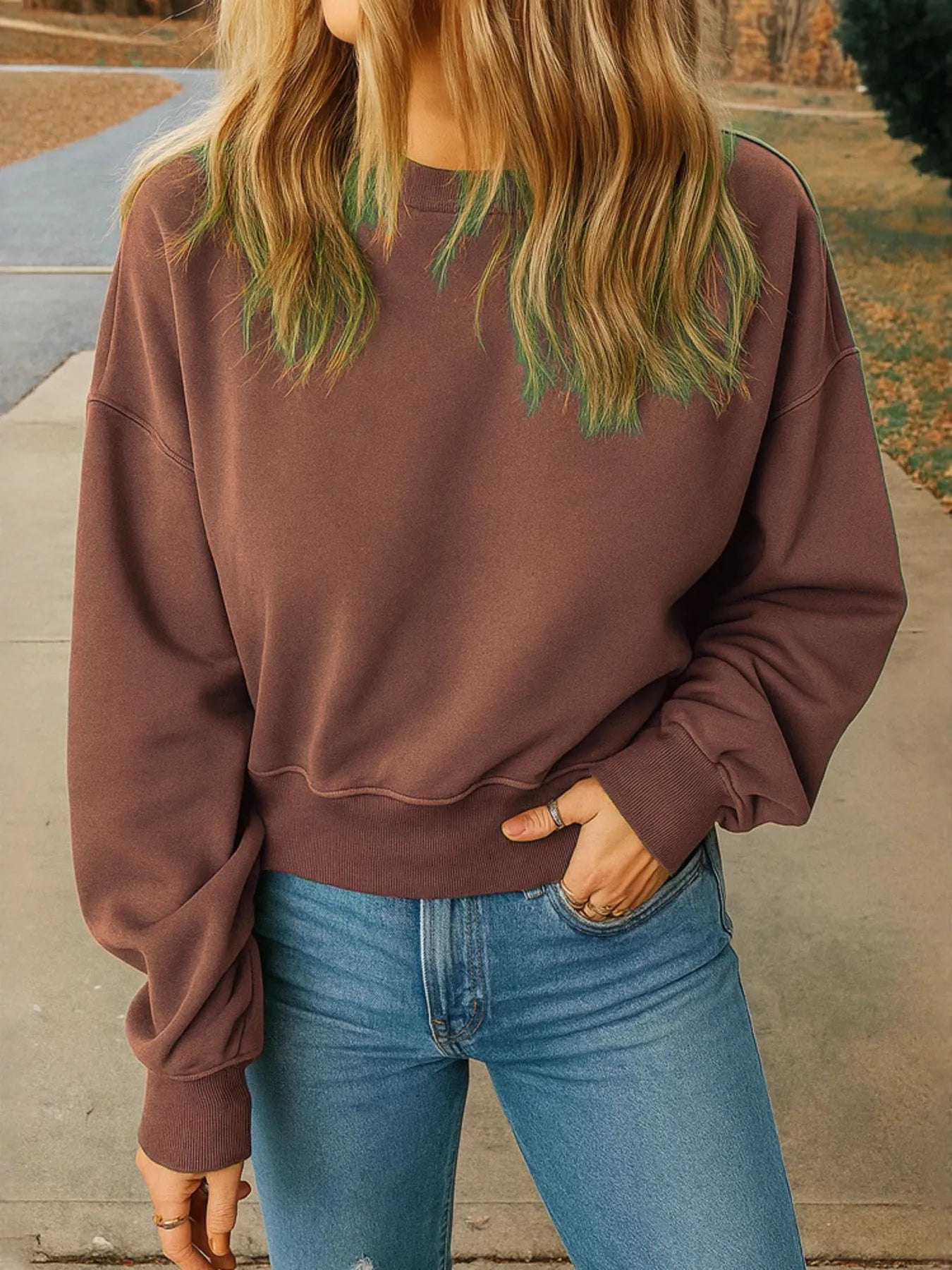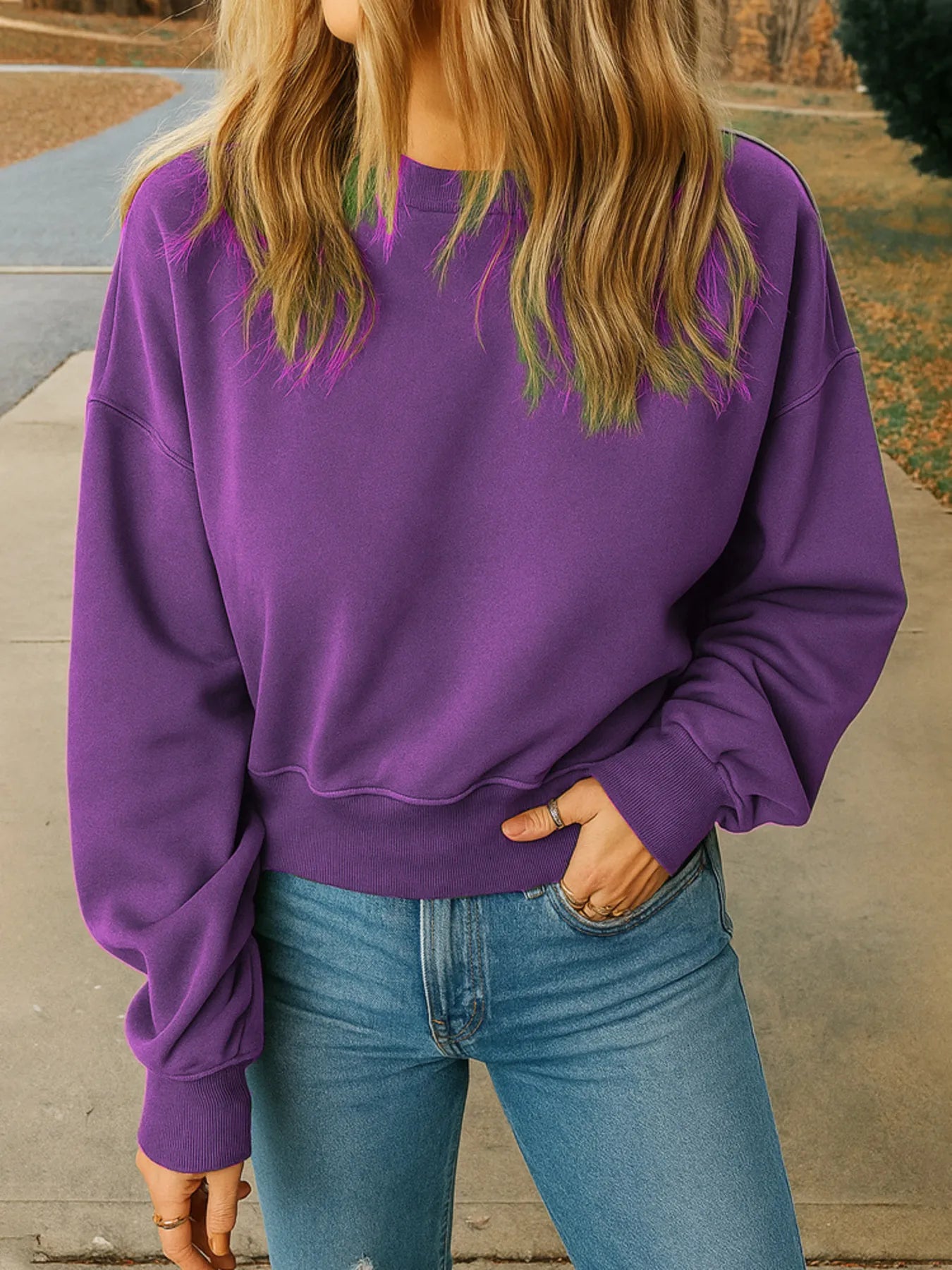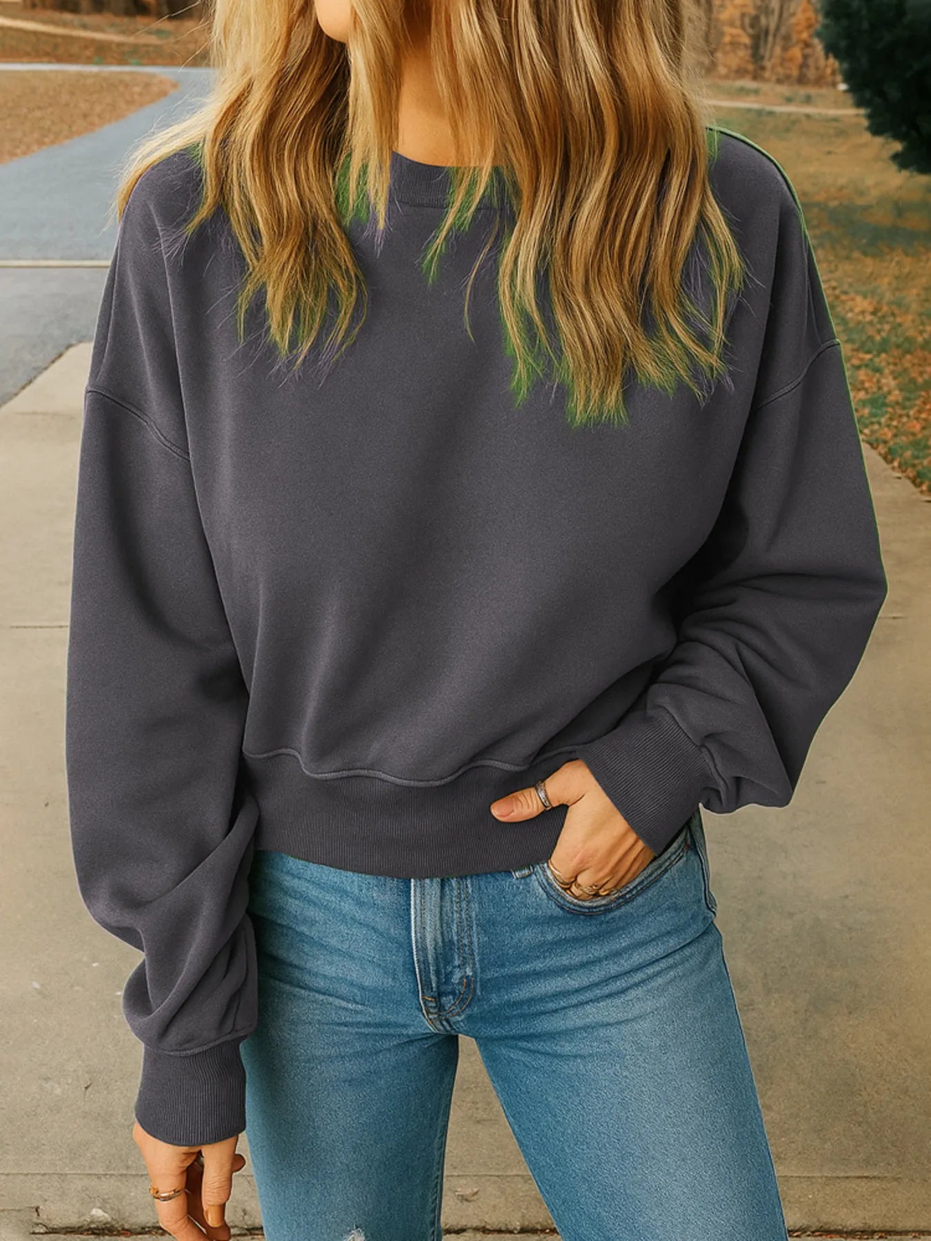 Full Size Basic style Round Neck Cropped Sweatshirt Plus Size