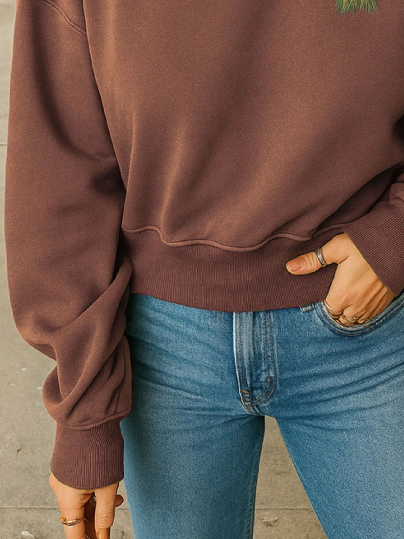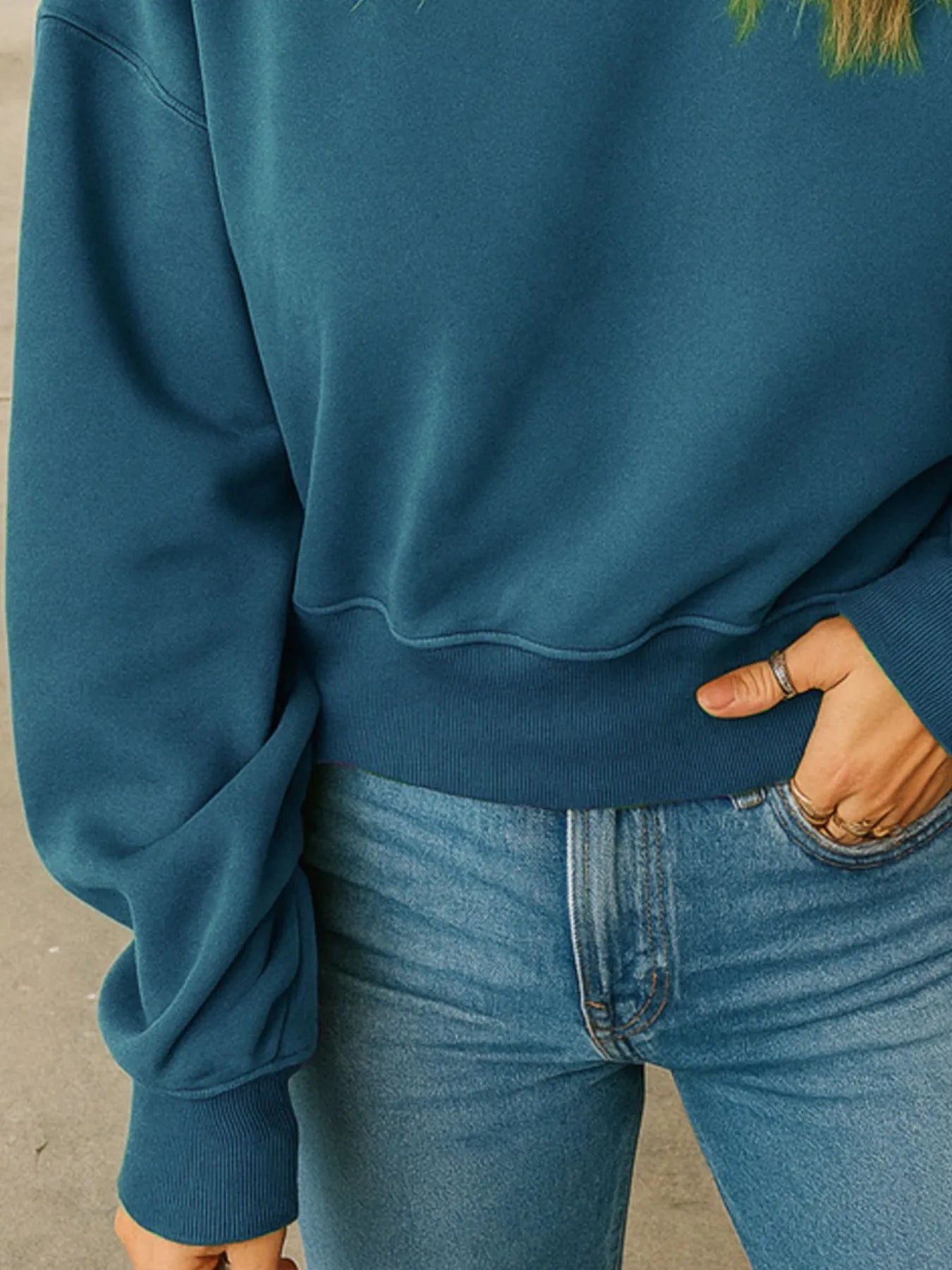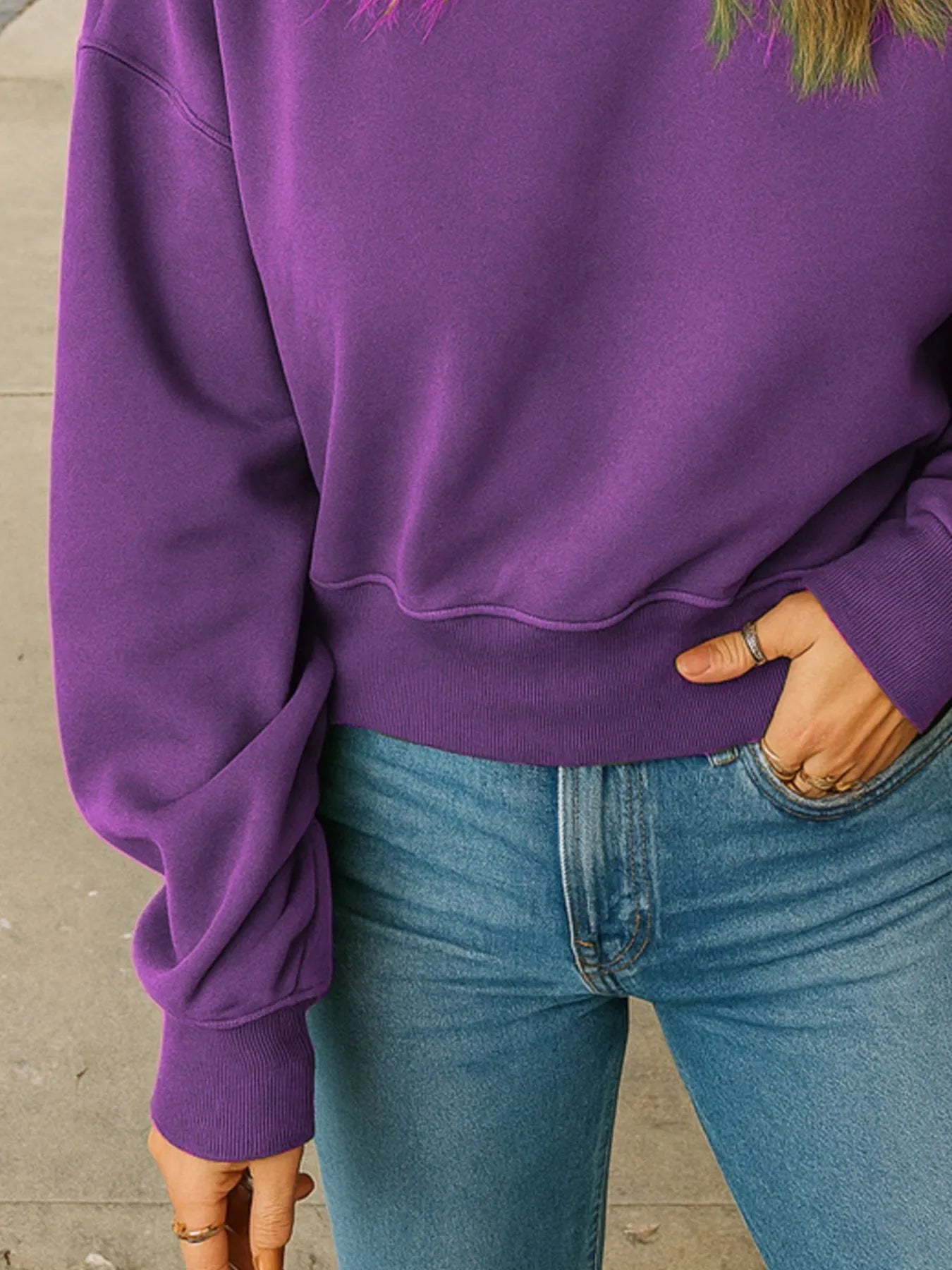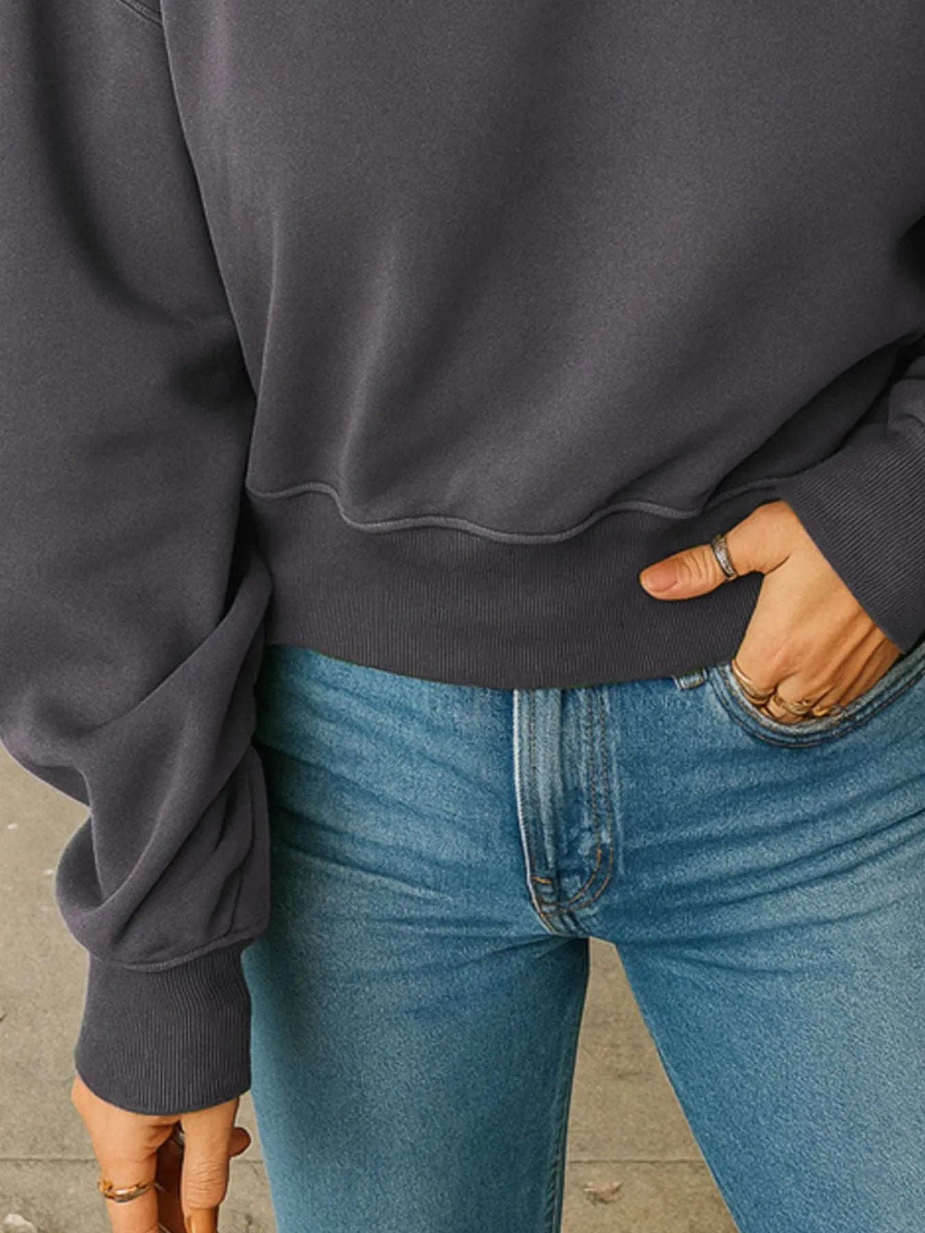 Full Size Basic style Round Neck Cropped Sweatshirt Plus Size