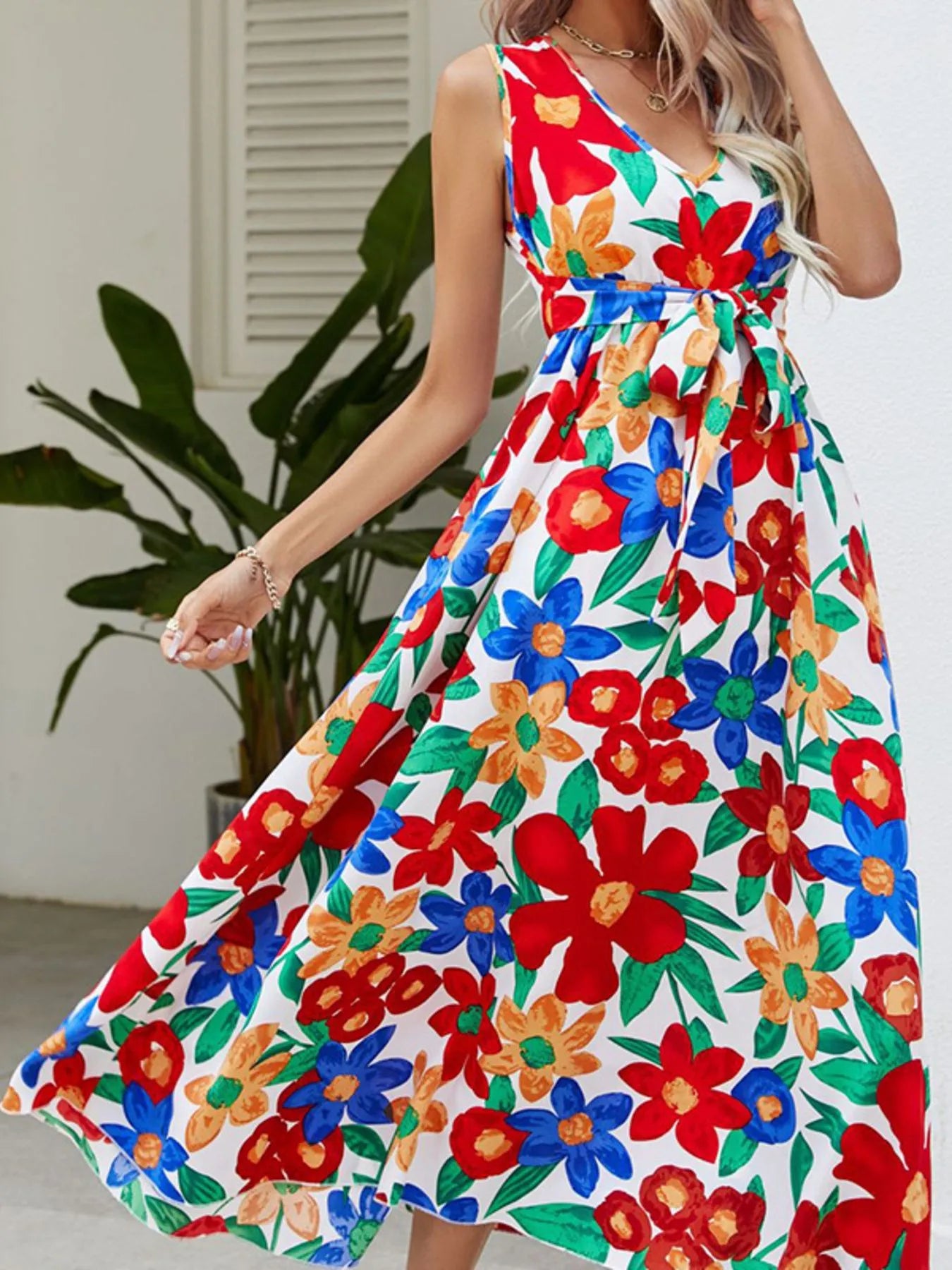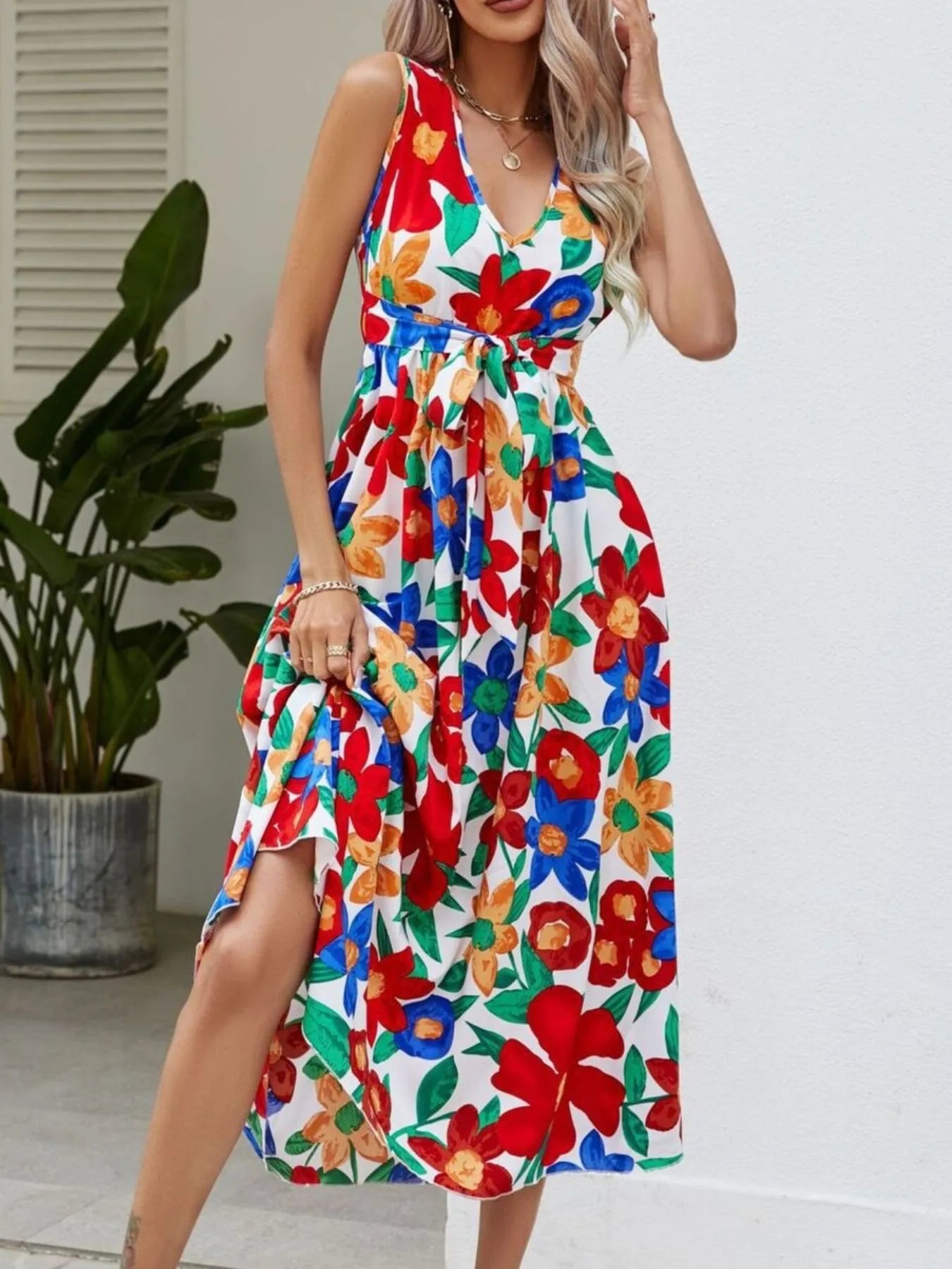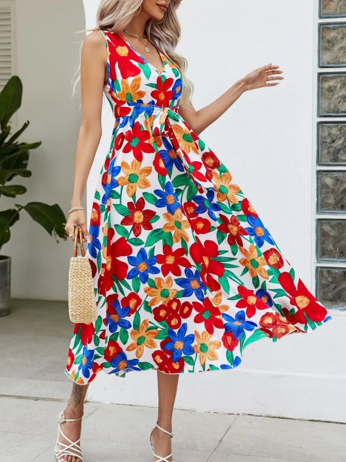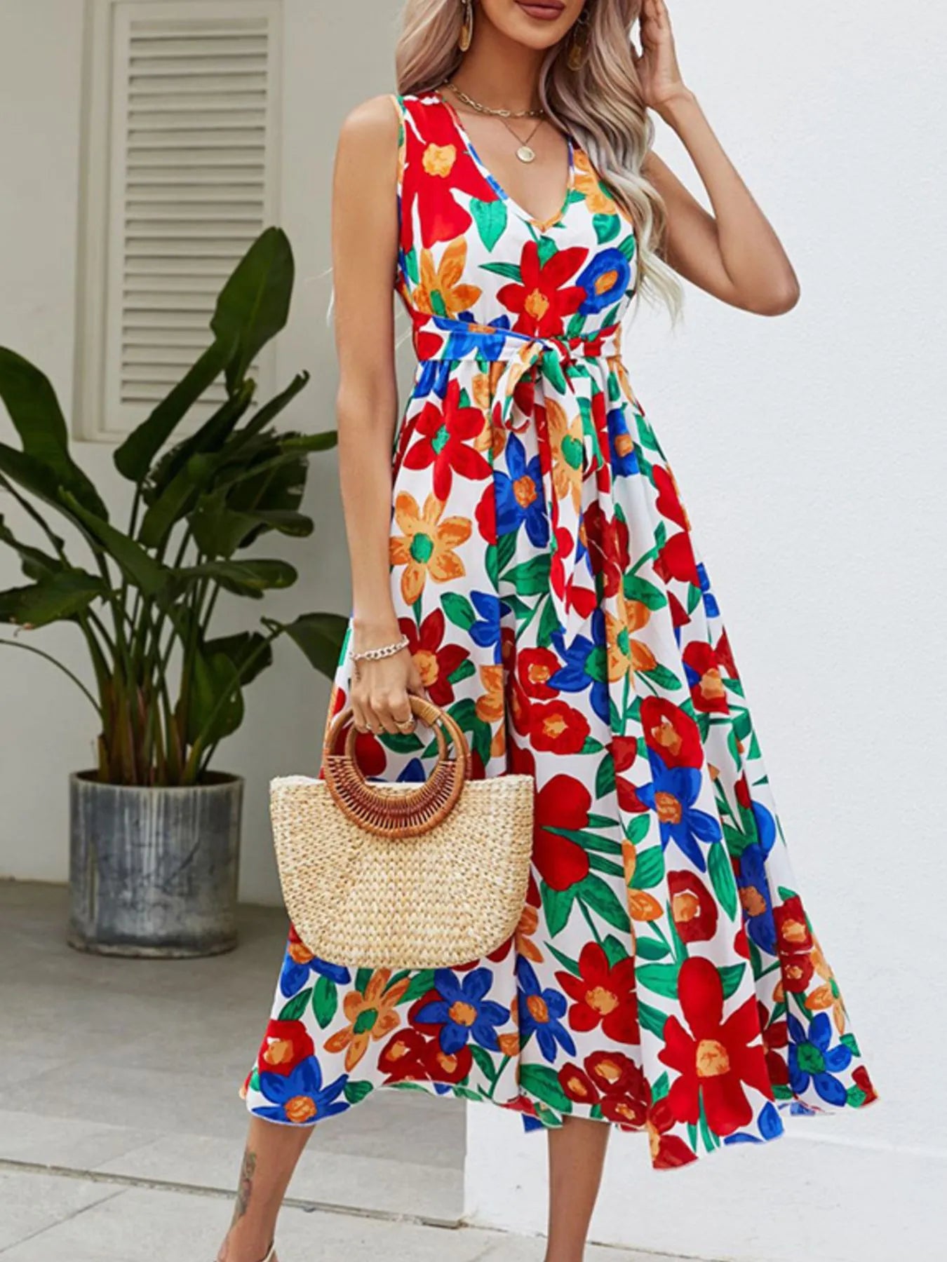 Full Size Floral V-Neck Sleeveless Dress Plus Size