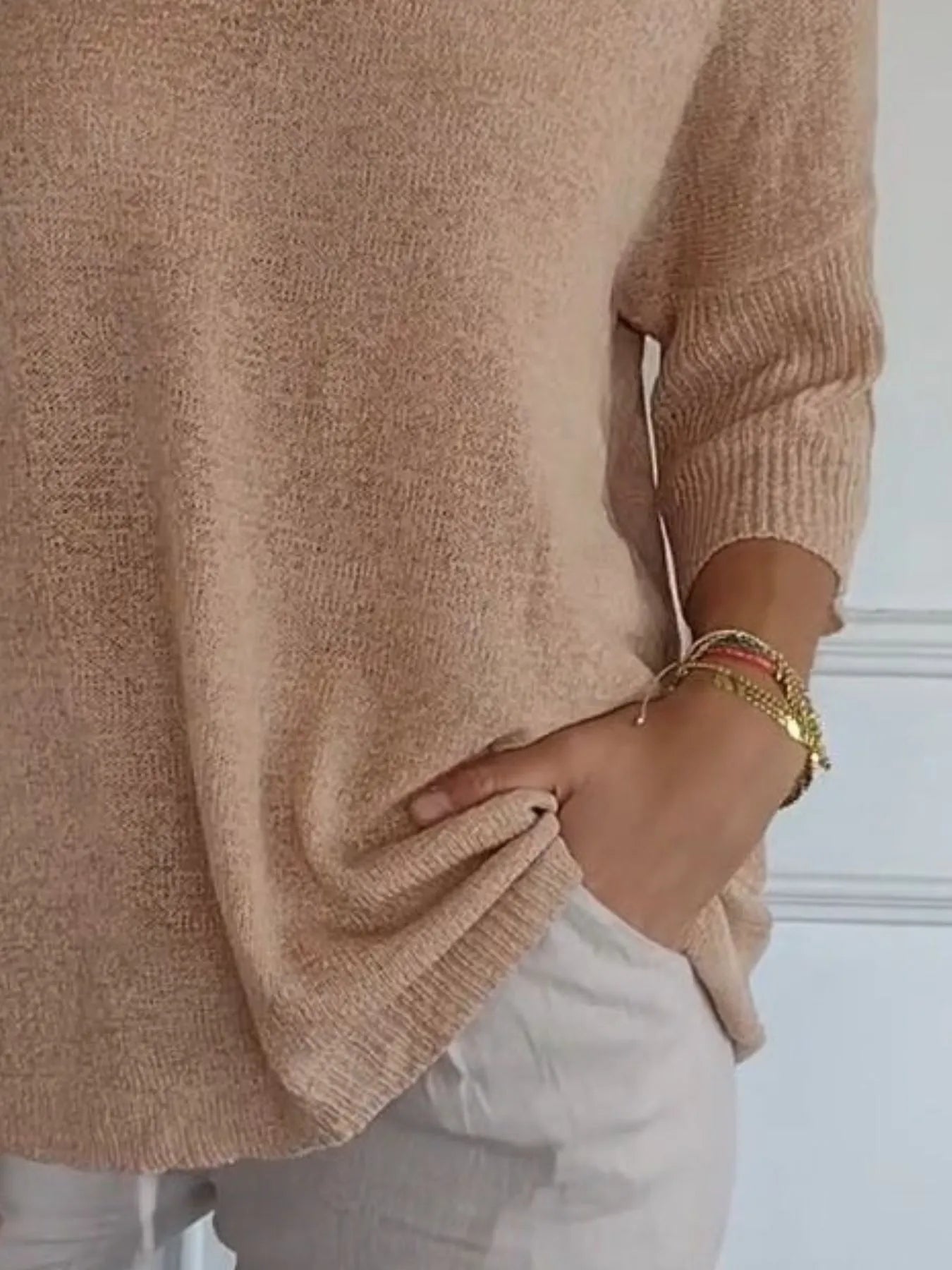 Full Size Relaxed Fit Ribbed Hem Sweater Plus Size