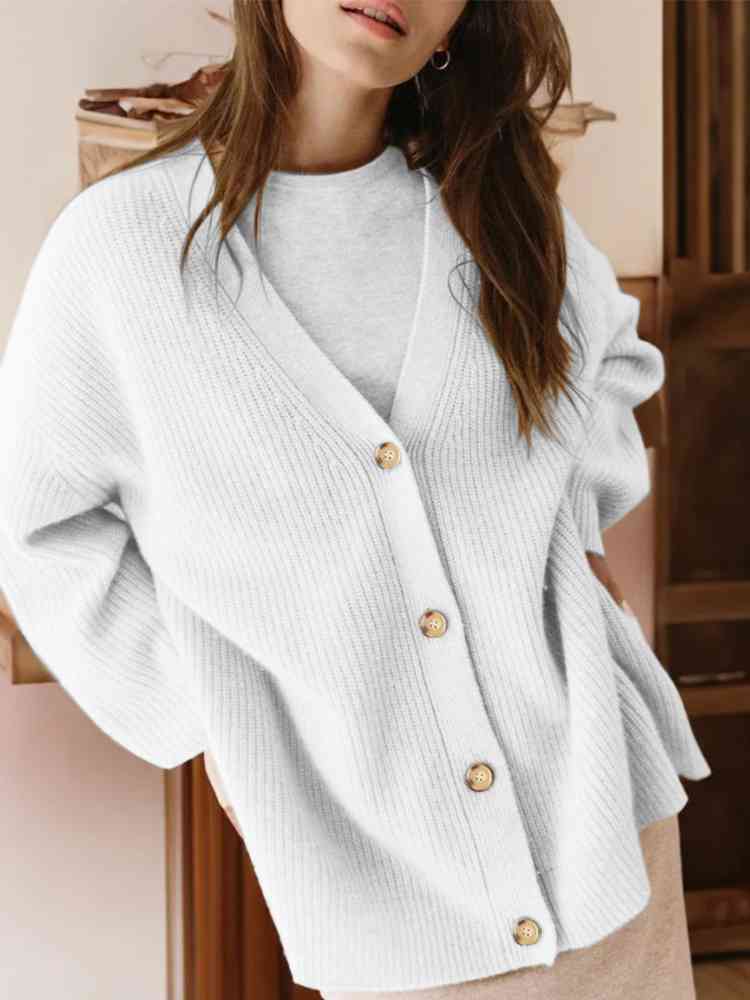 Full Size V-Neck Rib-Knit Cardigan