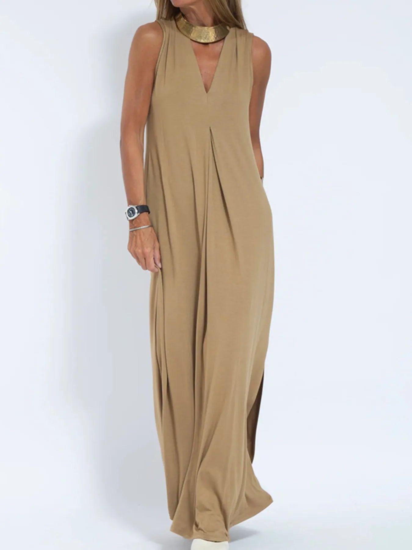 Full Size V-Neck Sleeveless Maxi Dress with Slit Plus Size