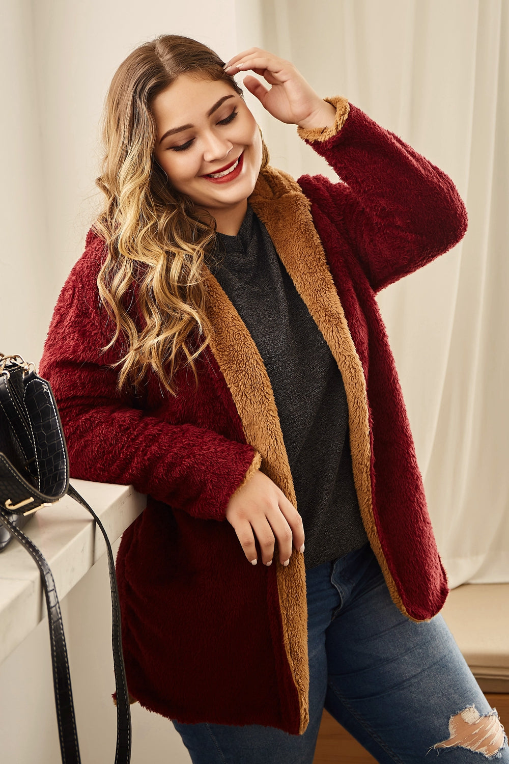 Hanny Plus Size Hooded Longline Teddy Jacket