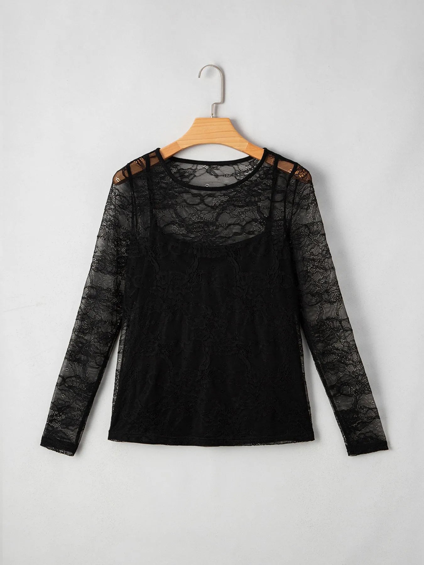 Lace Crochet Mesh Patched Slim Fit Long Sleeve Top