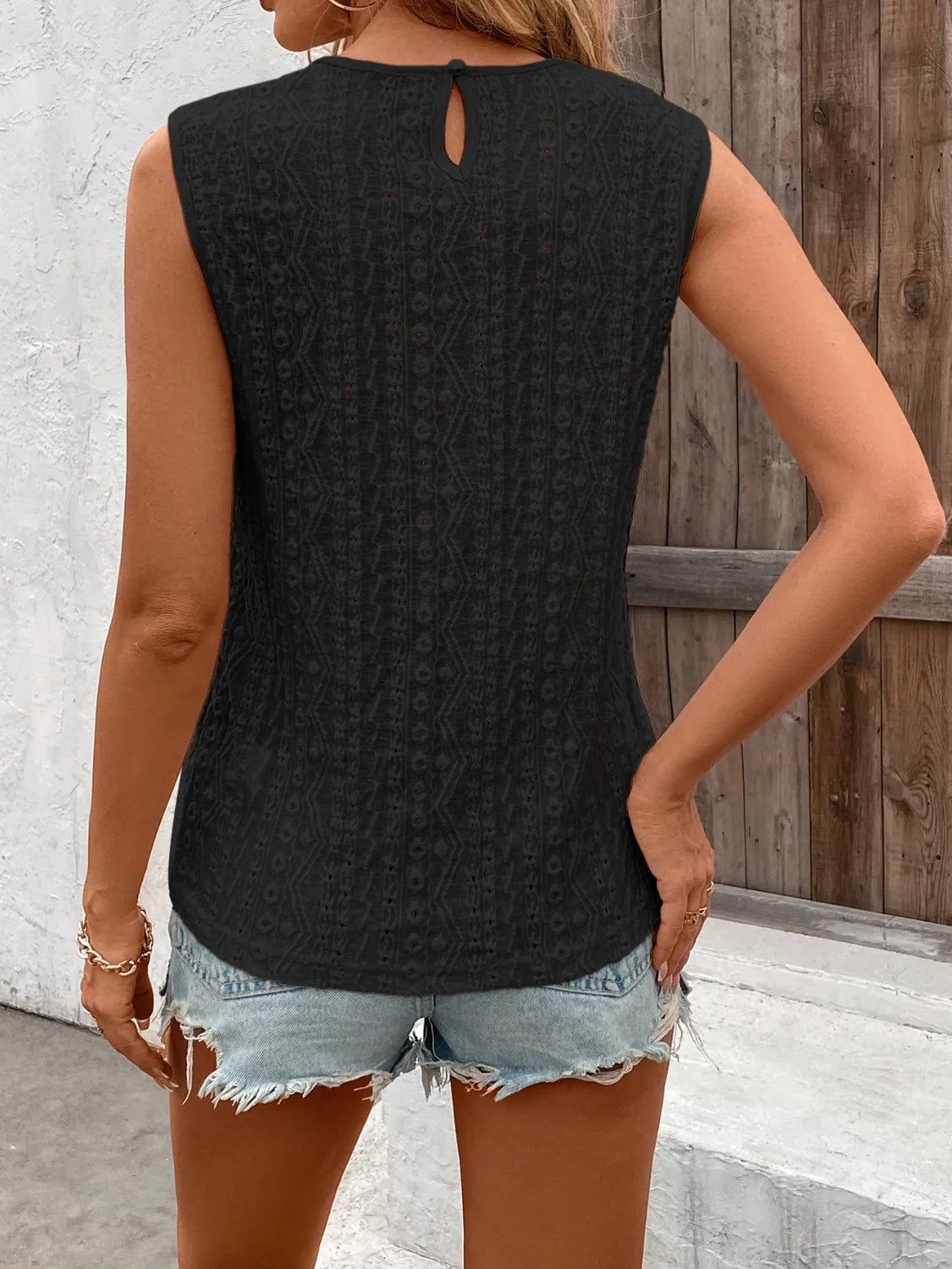 Lace Detail Eyelet Round Neck Tank
