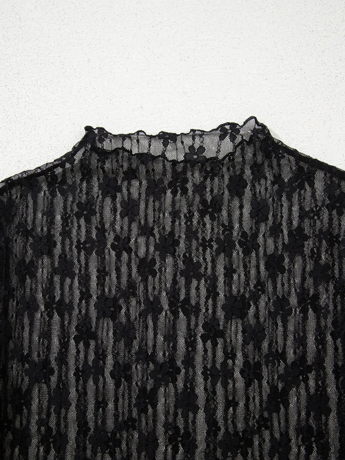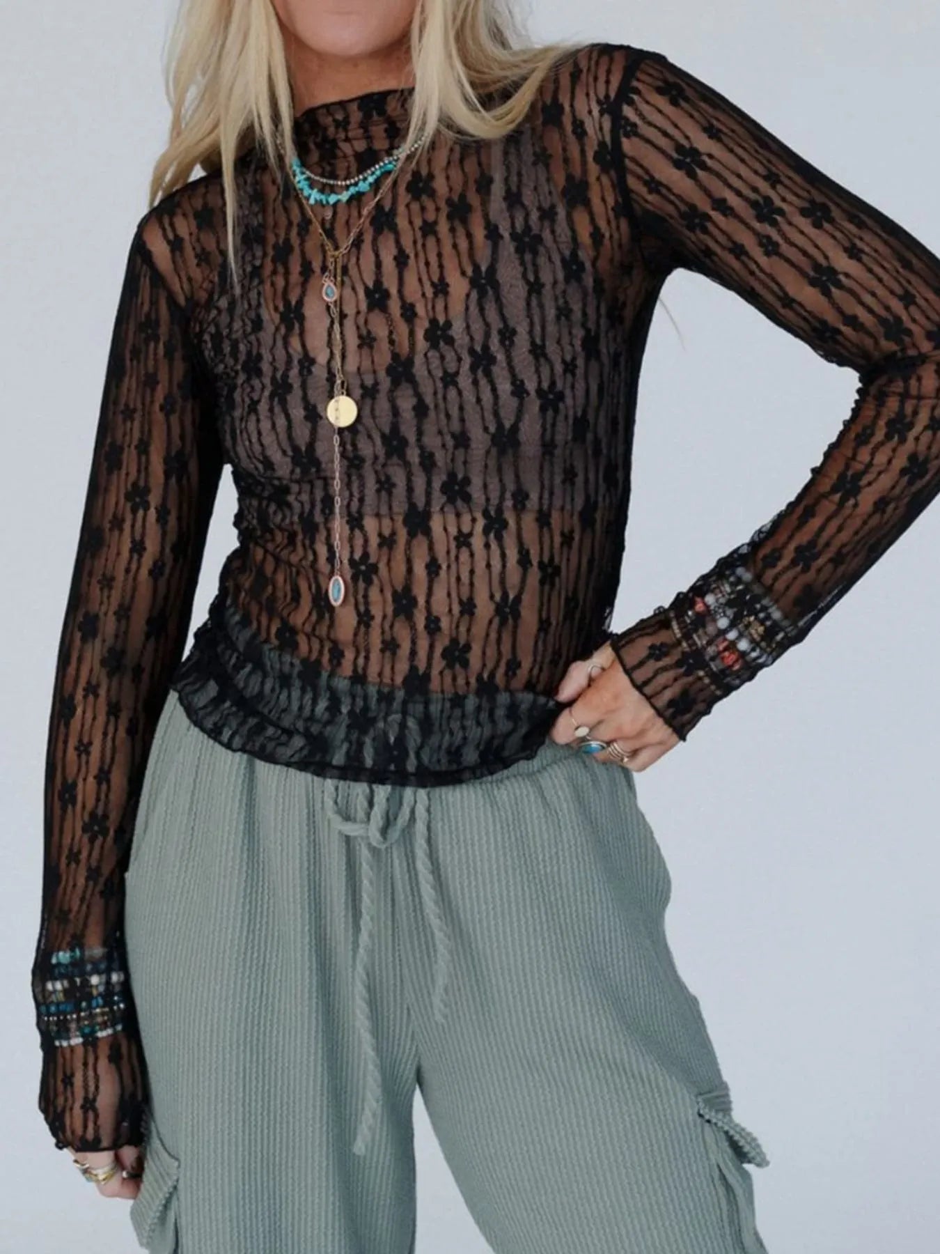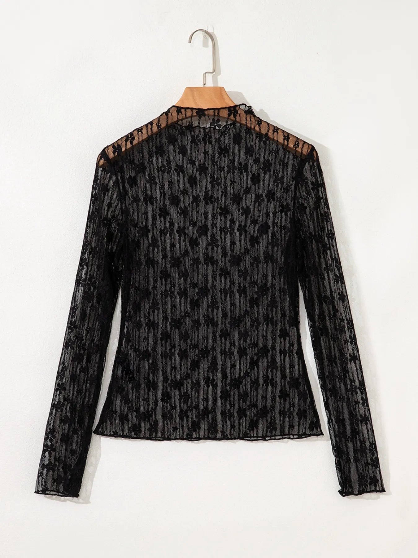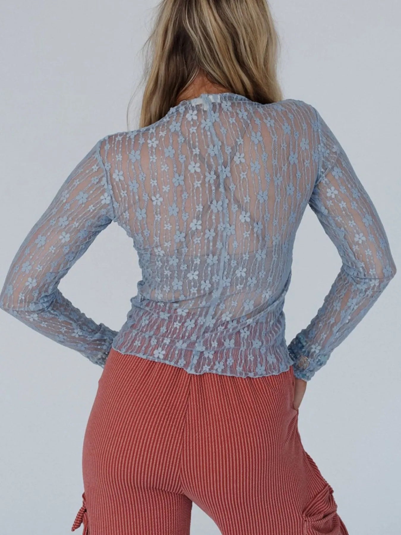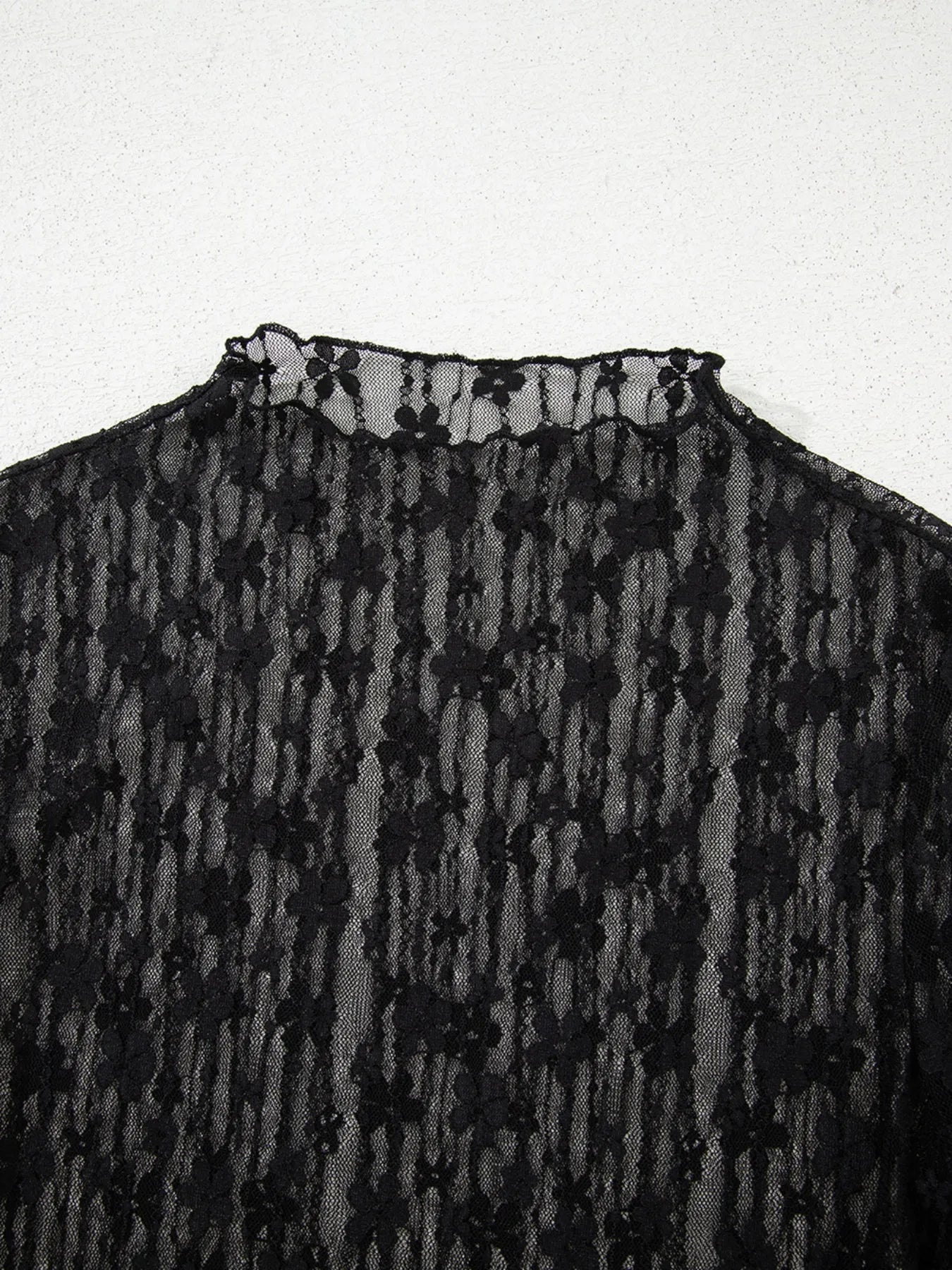 Lace See-Through Long Sleeve Blouse