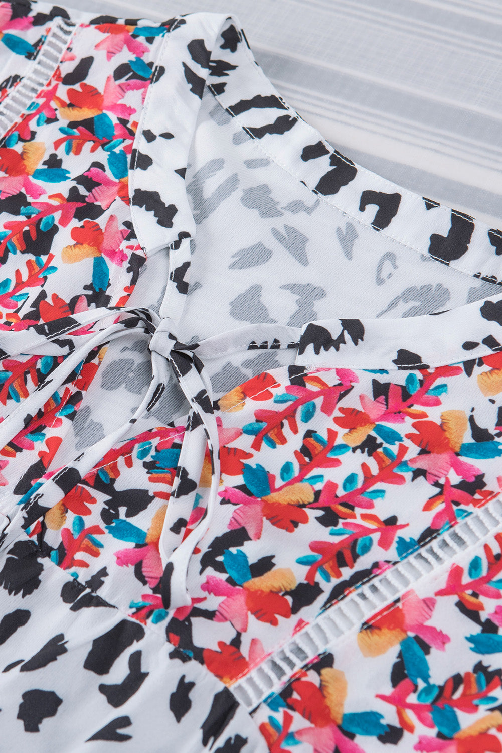 Leopard Tassel Tie Short Sleeve Top
