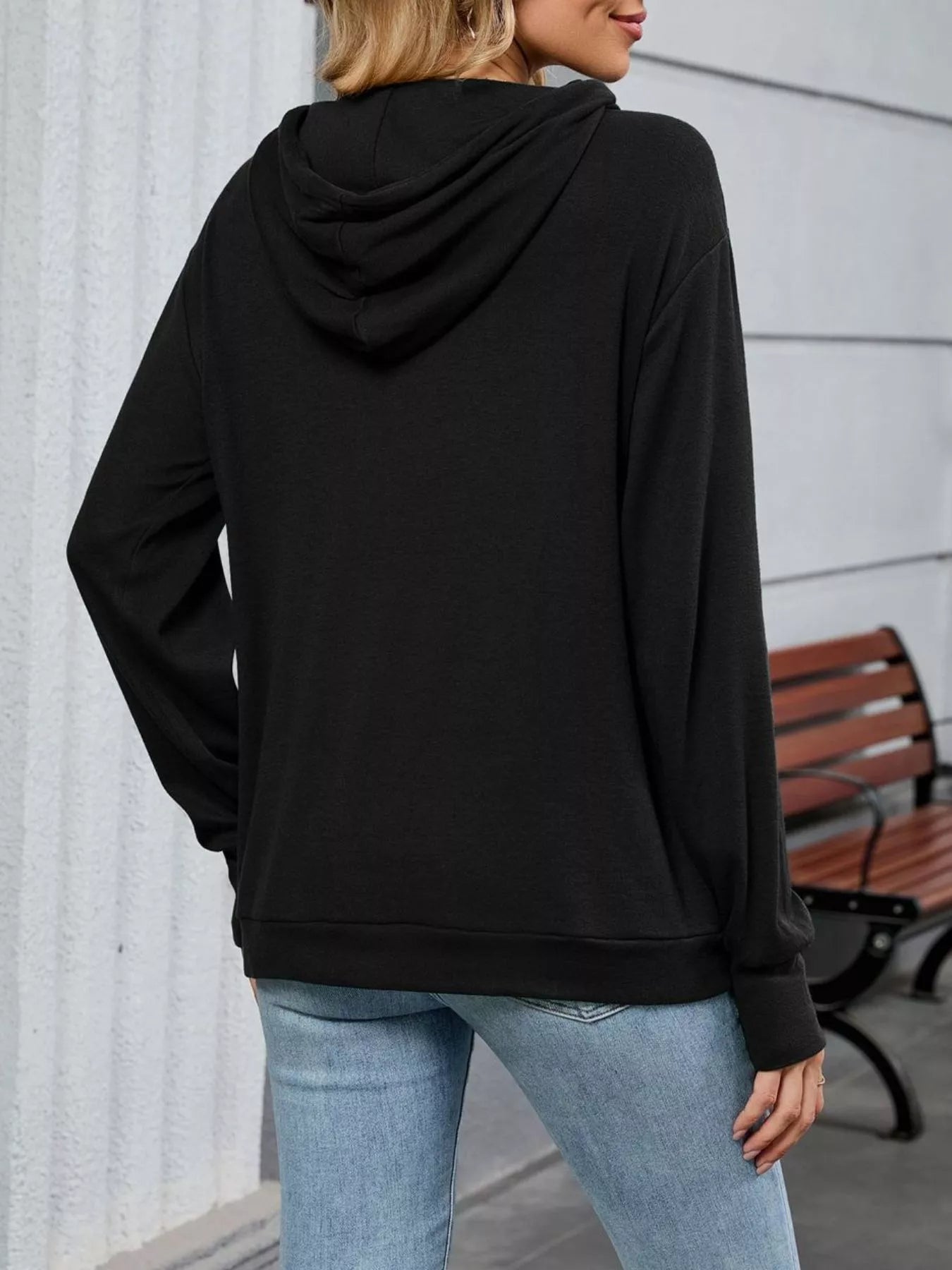 Letter Drawstring Long Sleeve Hoodie