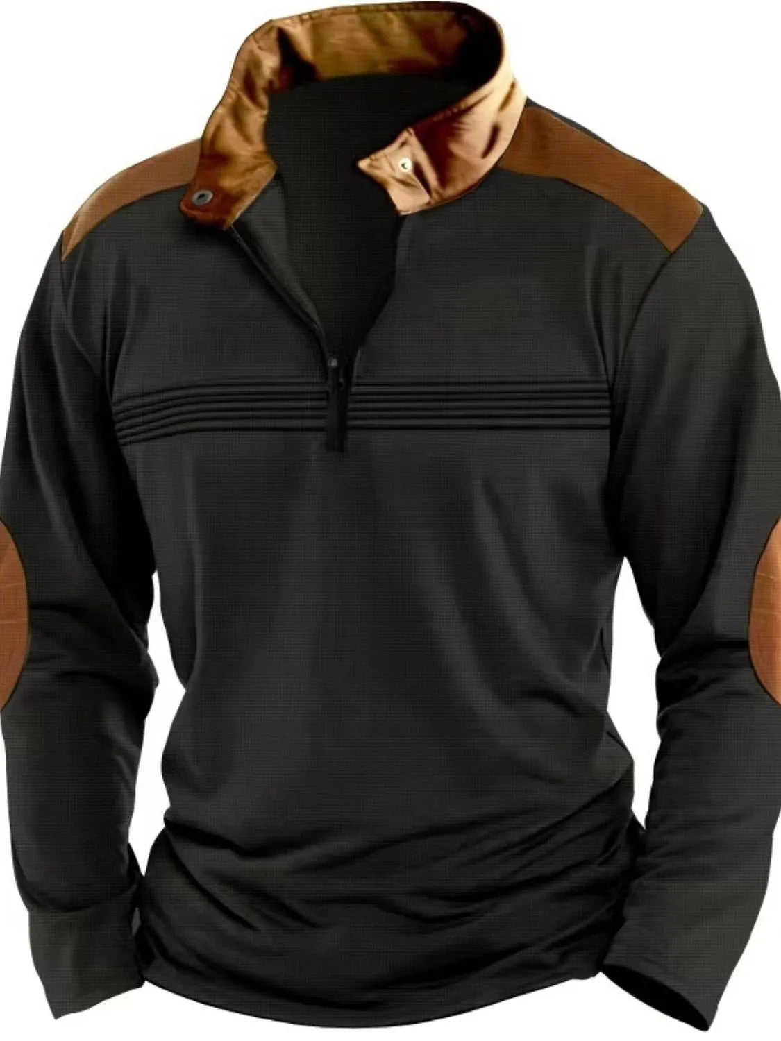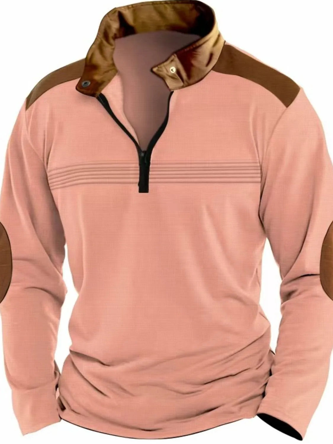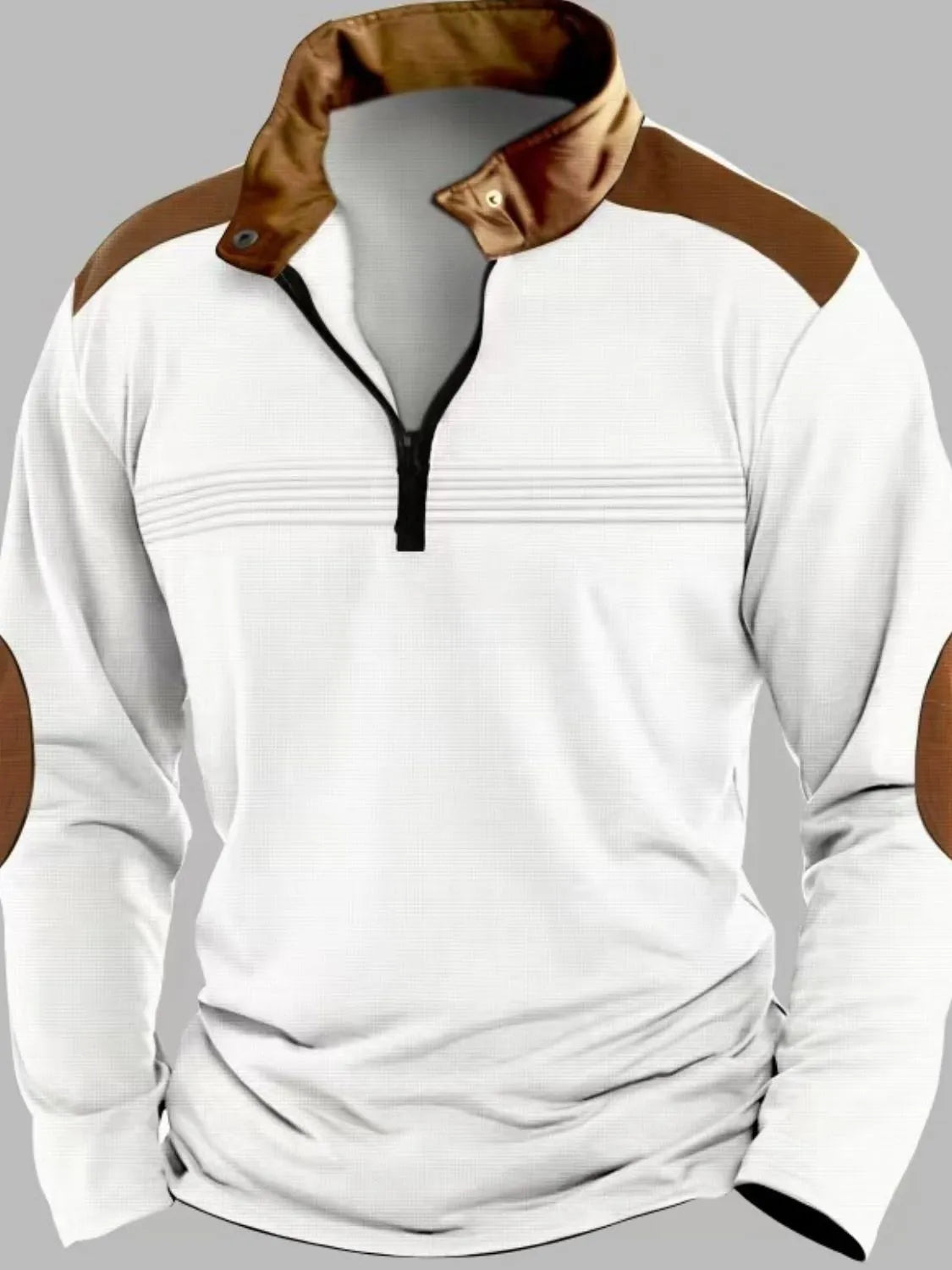 Men's Full Size Contrast Half Zip Long Sleeve Polo Plus Size