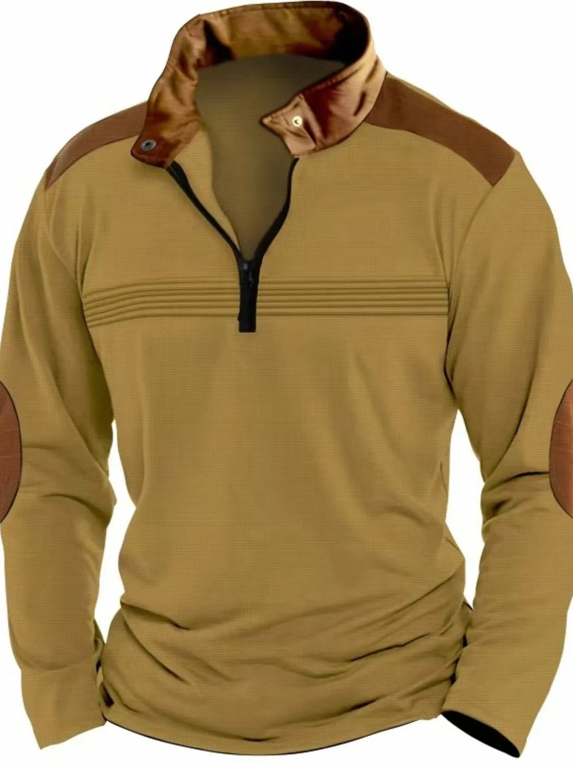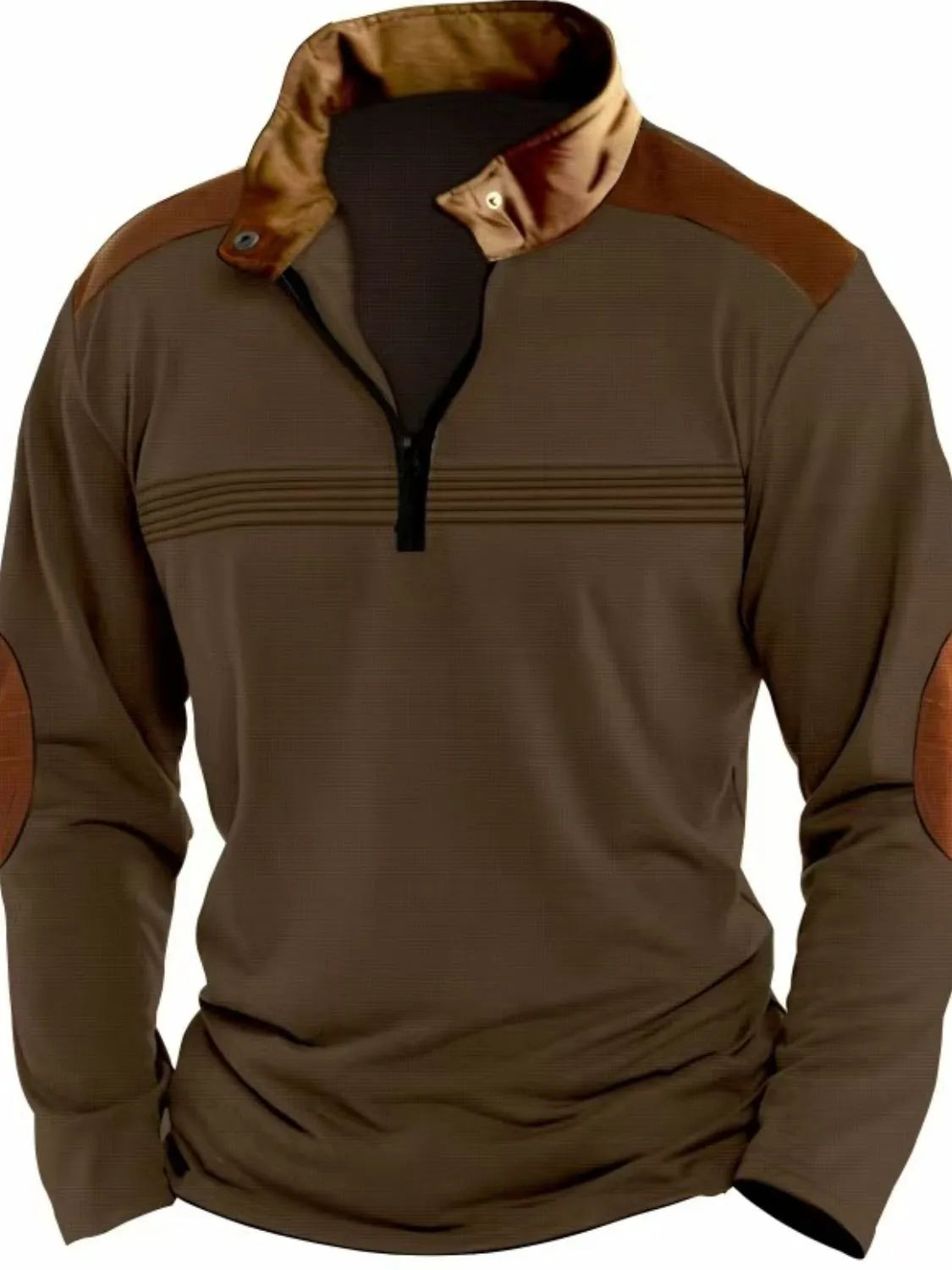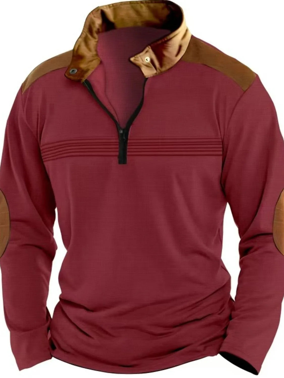 Men's Full Size Contrast Half Zip Long Sleeve Polo Plus Size