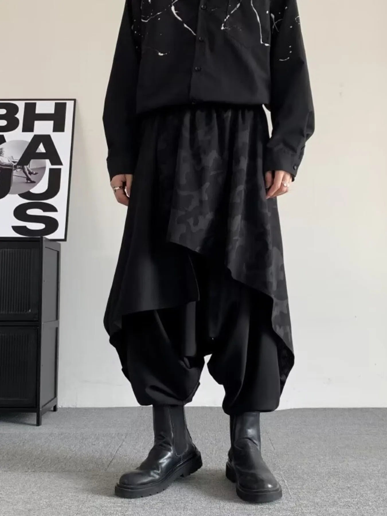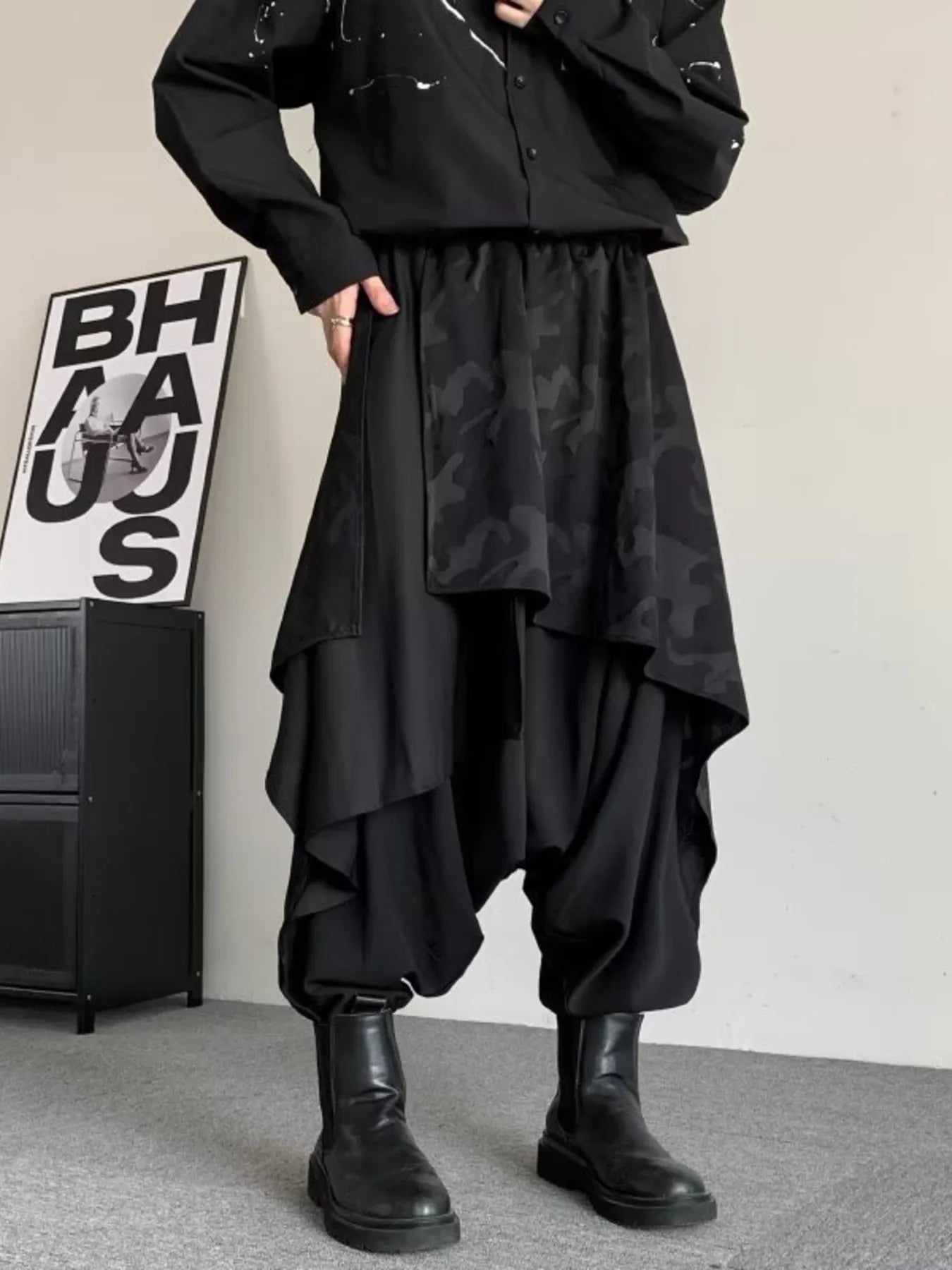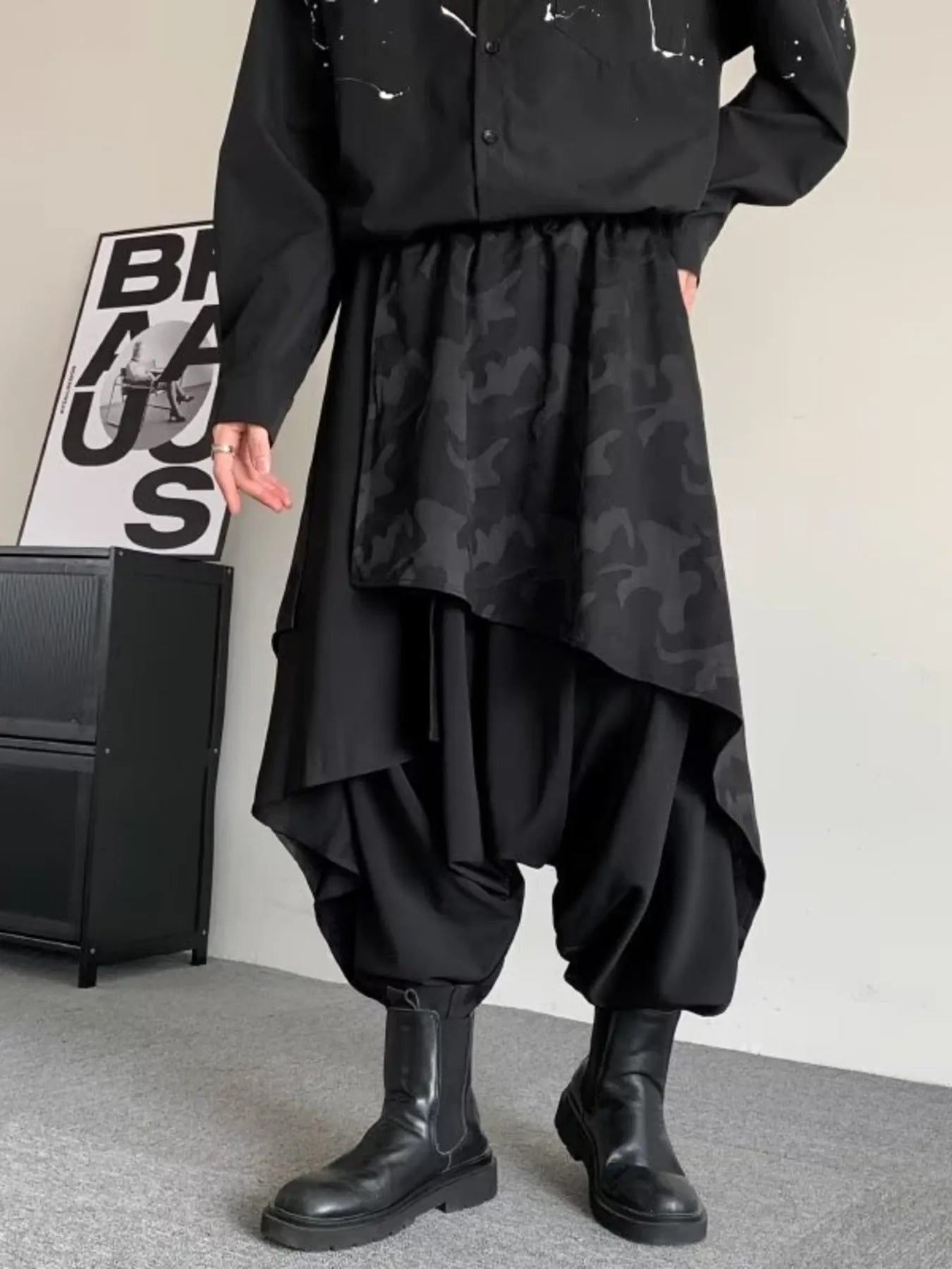 Men's Plus Size Asymmetrical Camo Waist Harem Pants