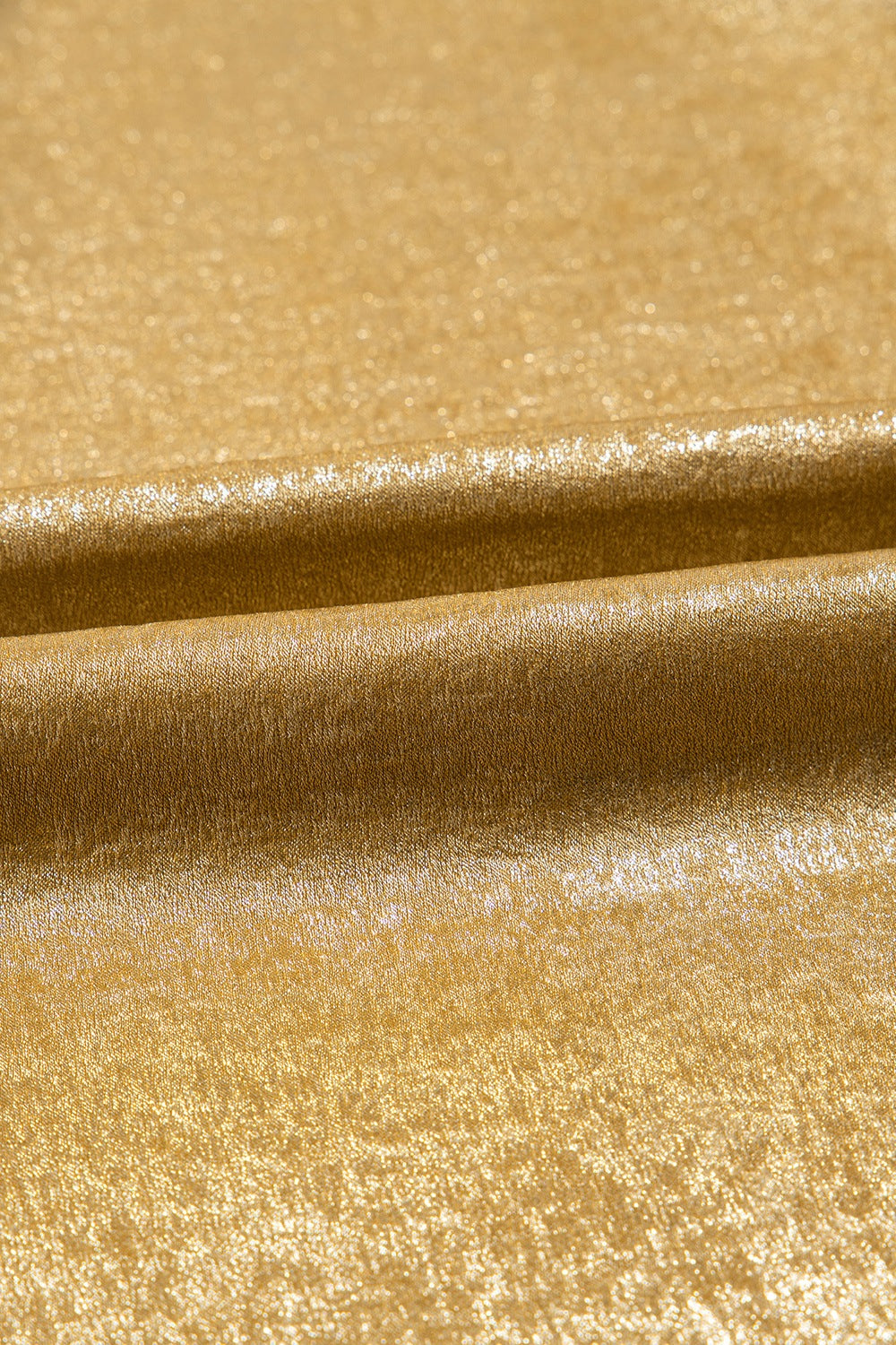 Metallic Luster Round Neck Frill 3/4 Sleeve Blouse