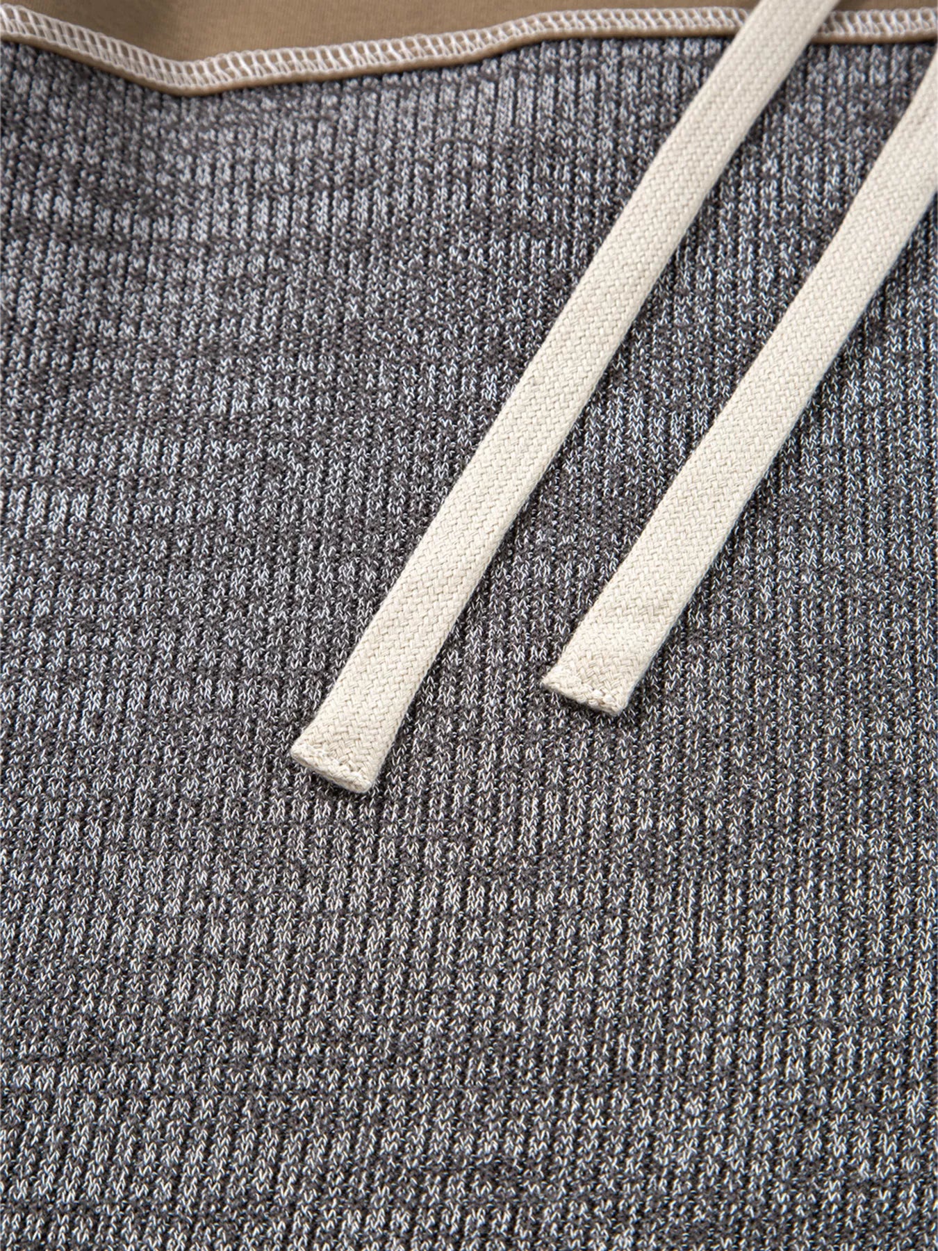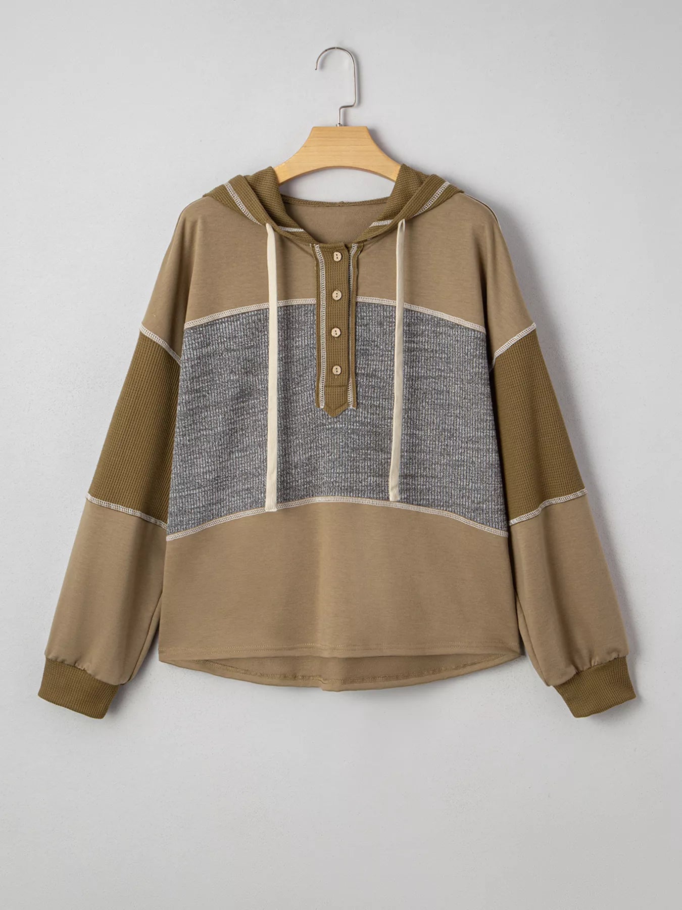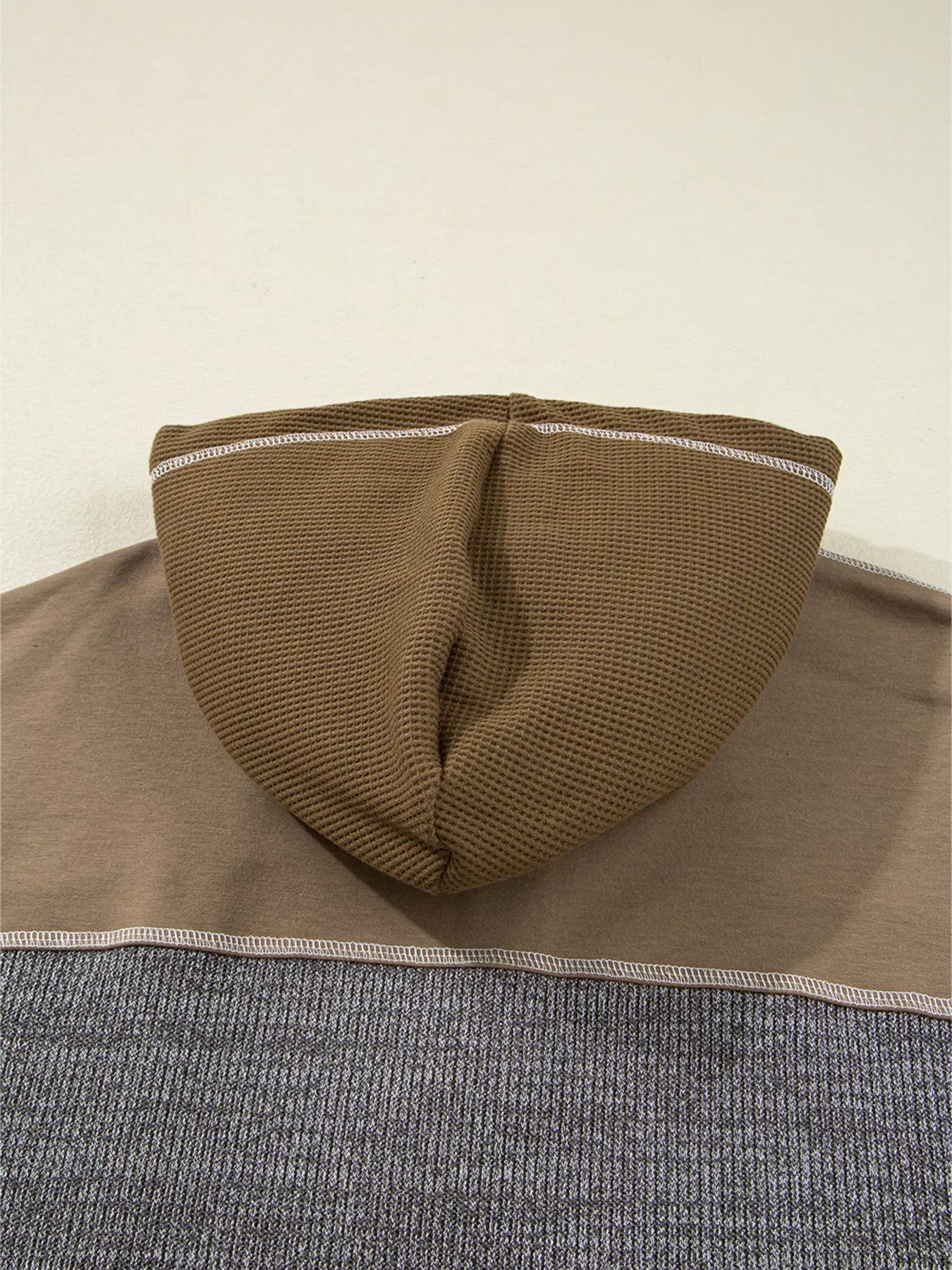 Mixed Texture Patchwork Exposed Seam Half Button Hoodie