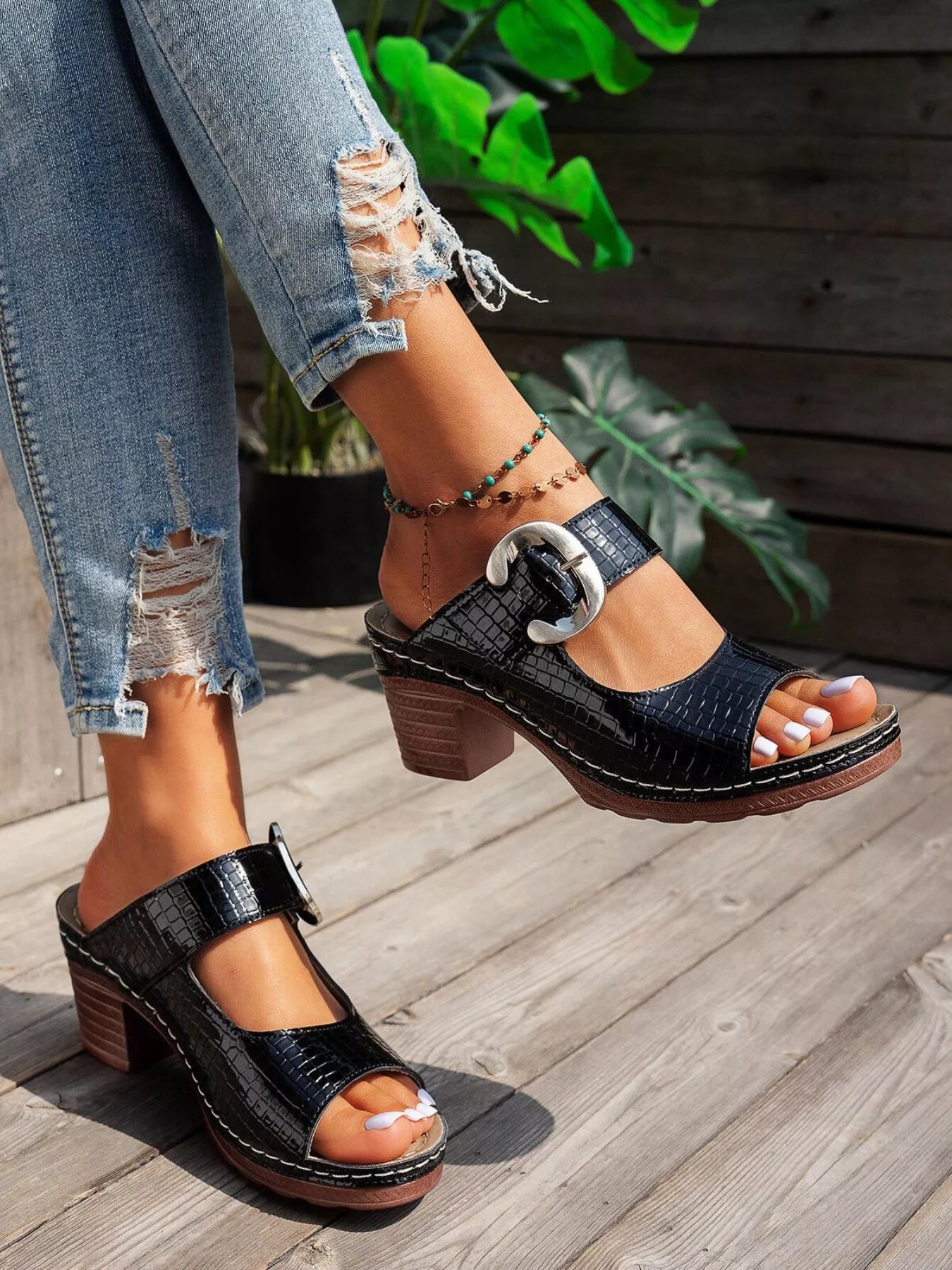 Open Toe Block Heels Sandals