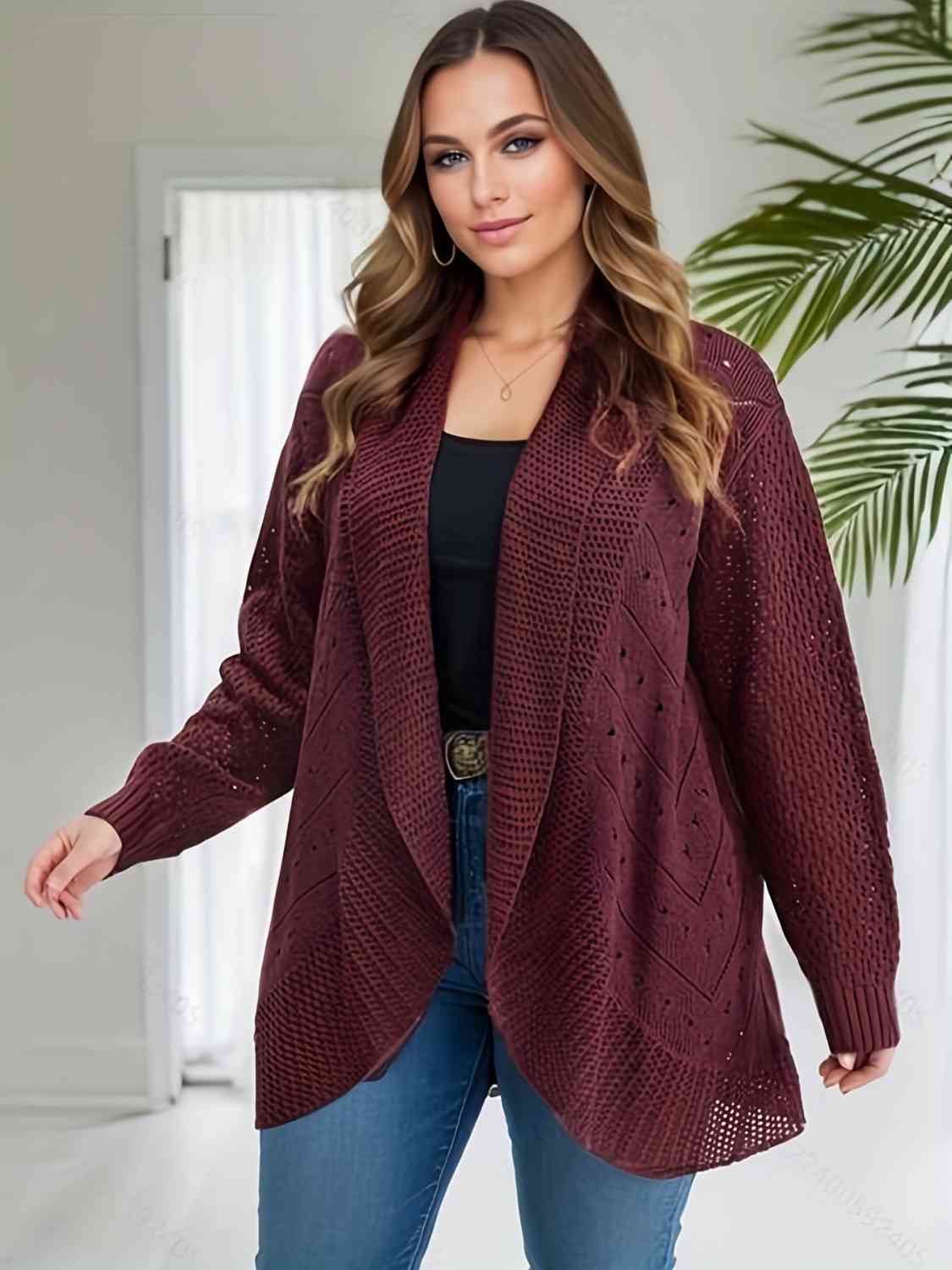 Plus Size Open Front Openwork Cardigan