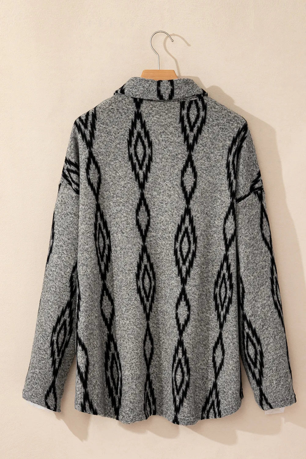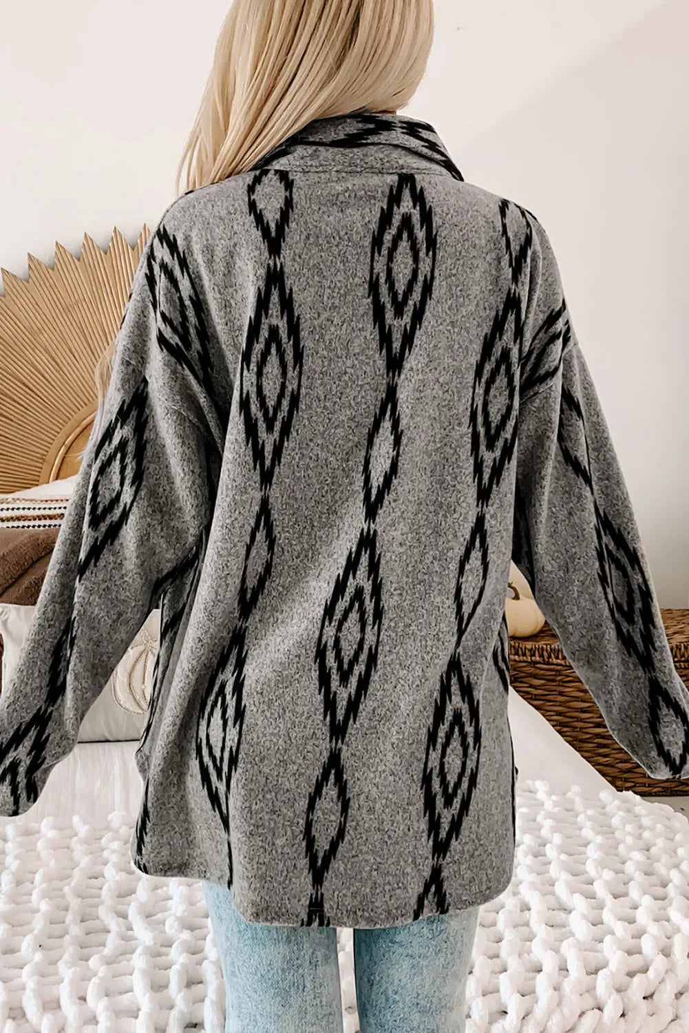 Pocketed Geometric Collared Neck Button Down Shacket
