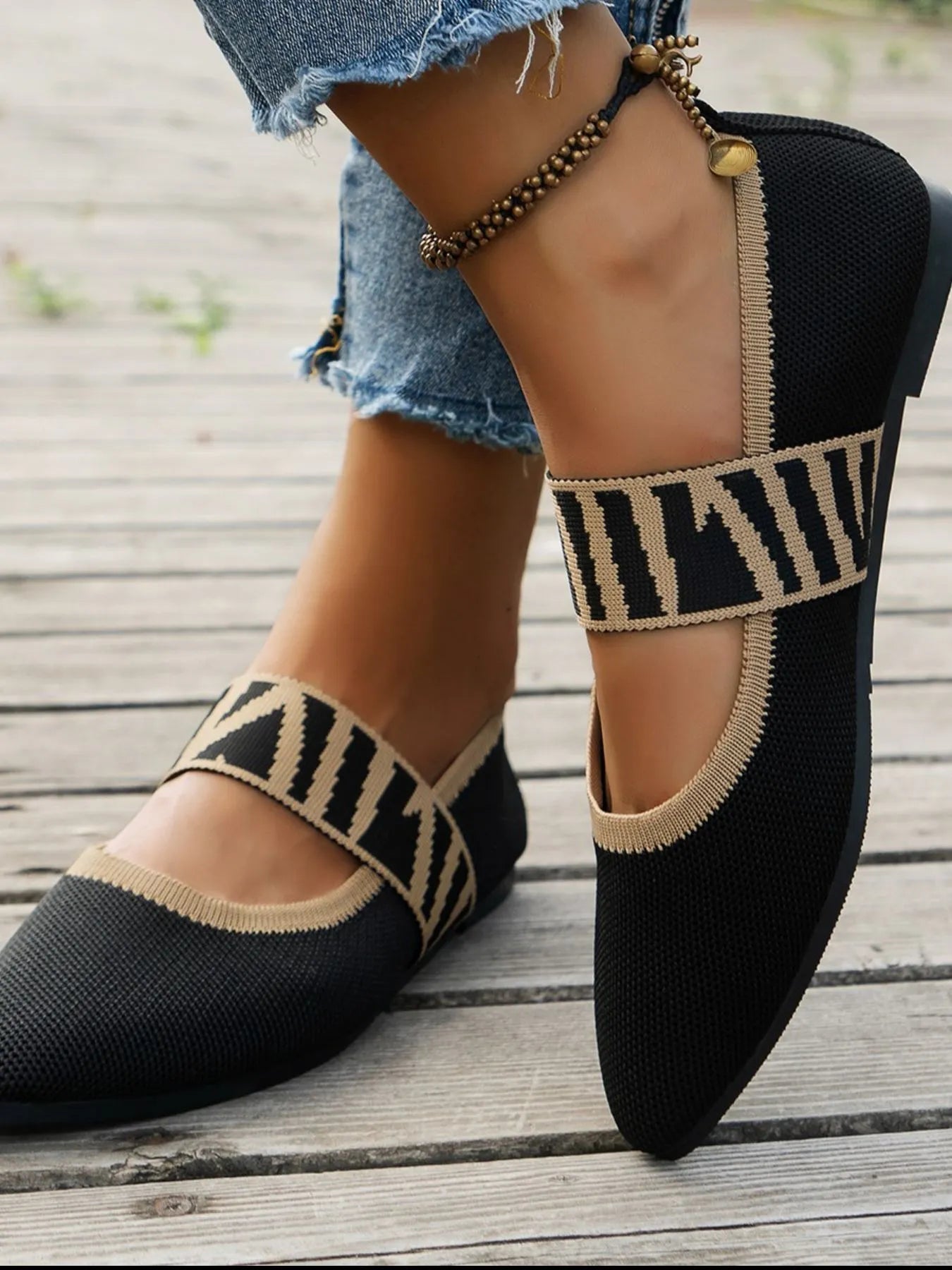 Point Toe Flats Mesh Gingham Strap Loafers