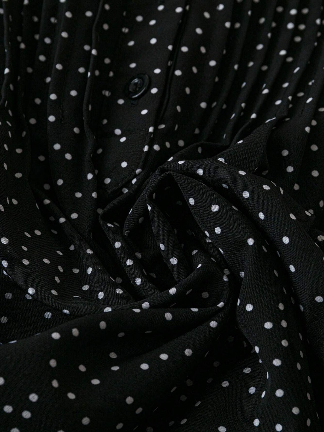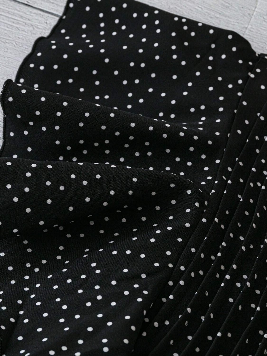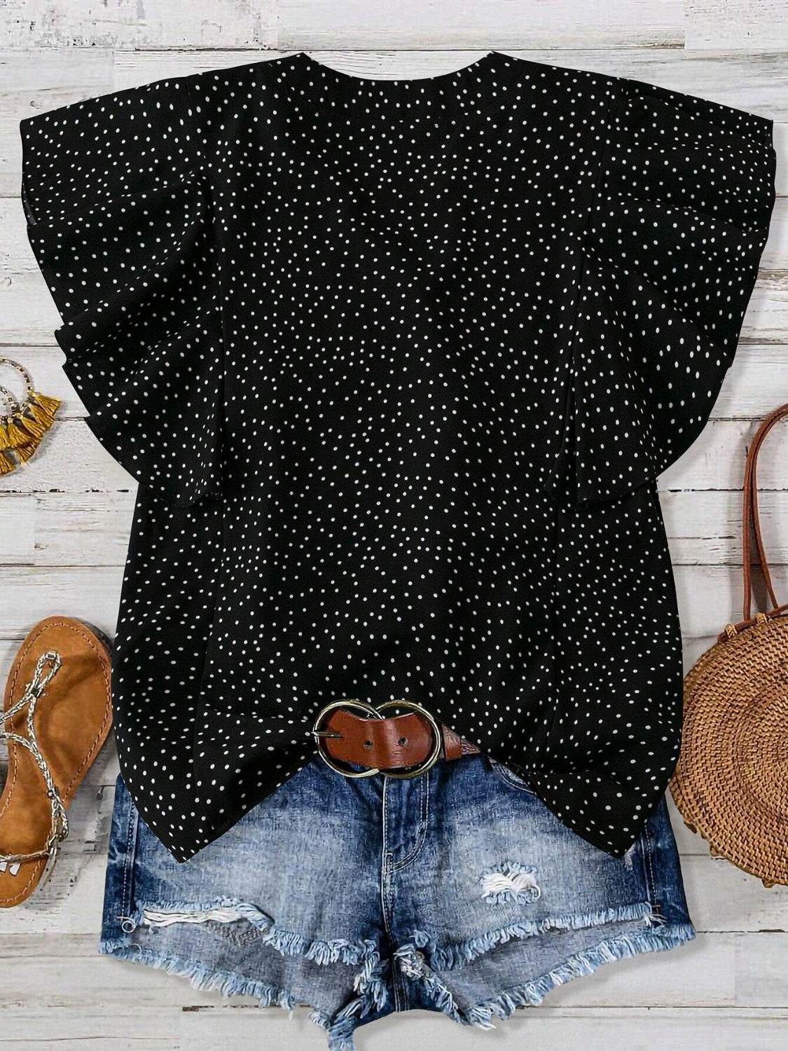 Polka Dot Notched Ruffled Cap Sleeve Blouse