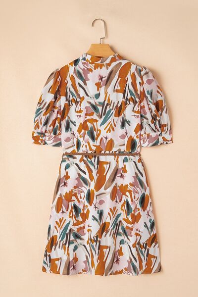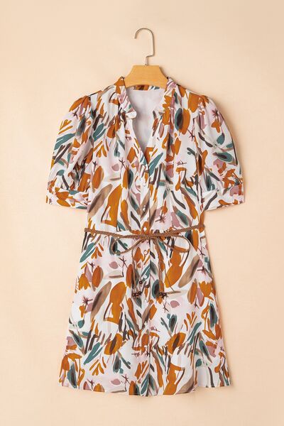 Printed Notched Short Sleeve Mini Dress