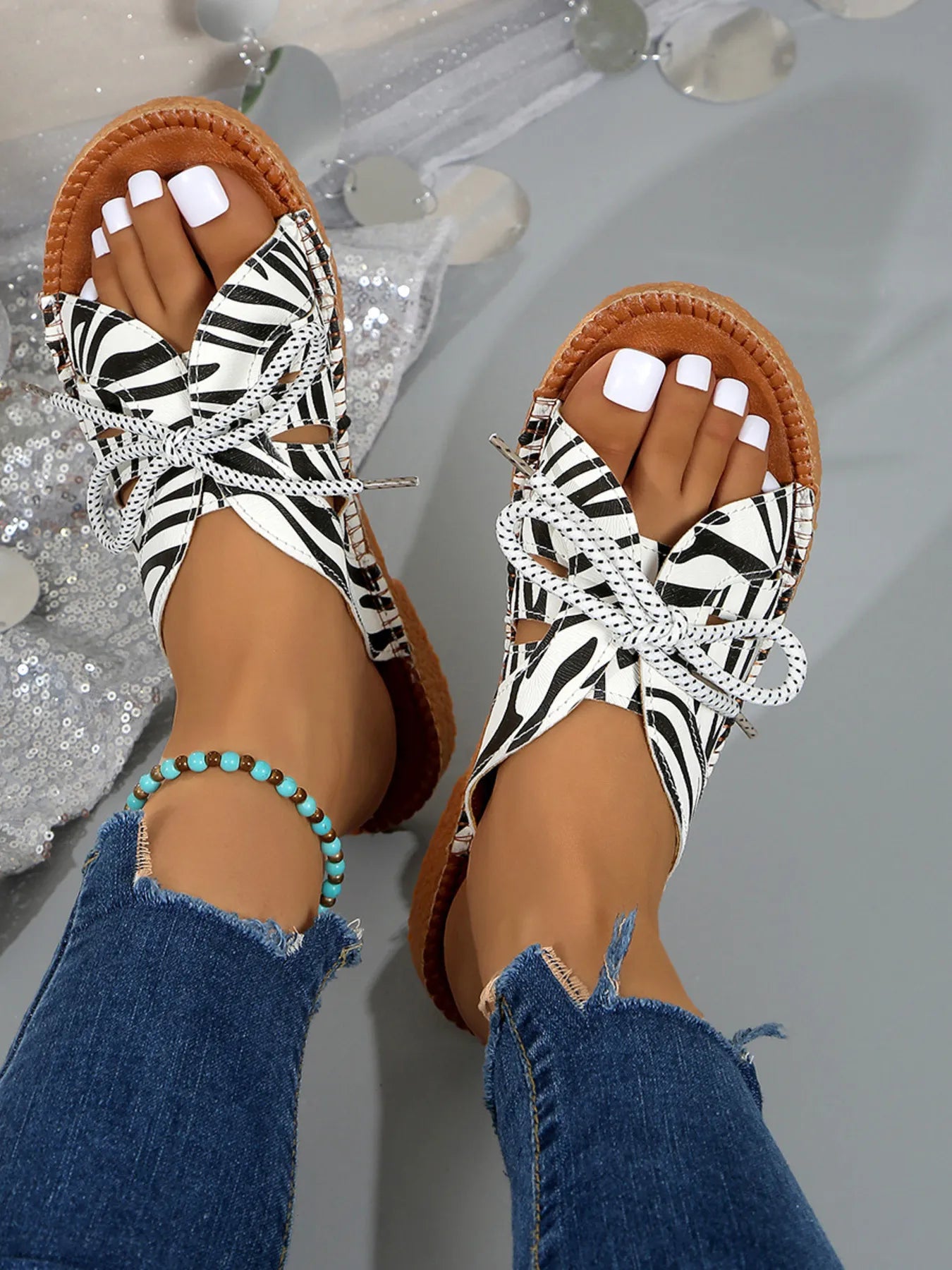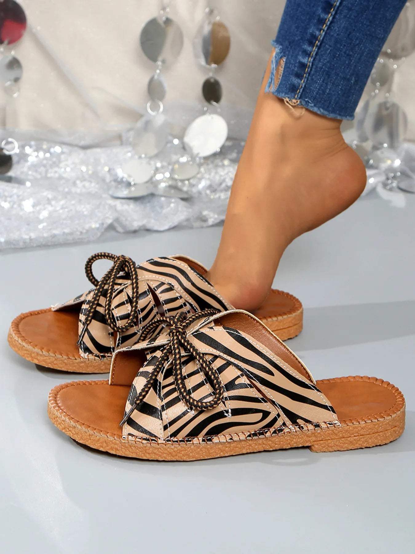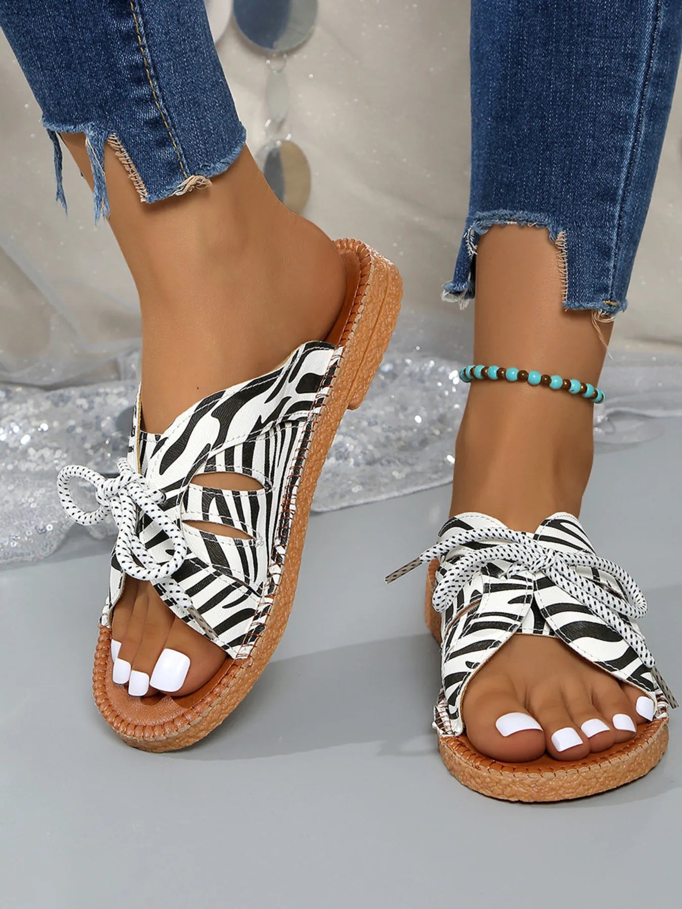 Printed Tied Flat Sandals