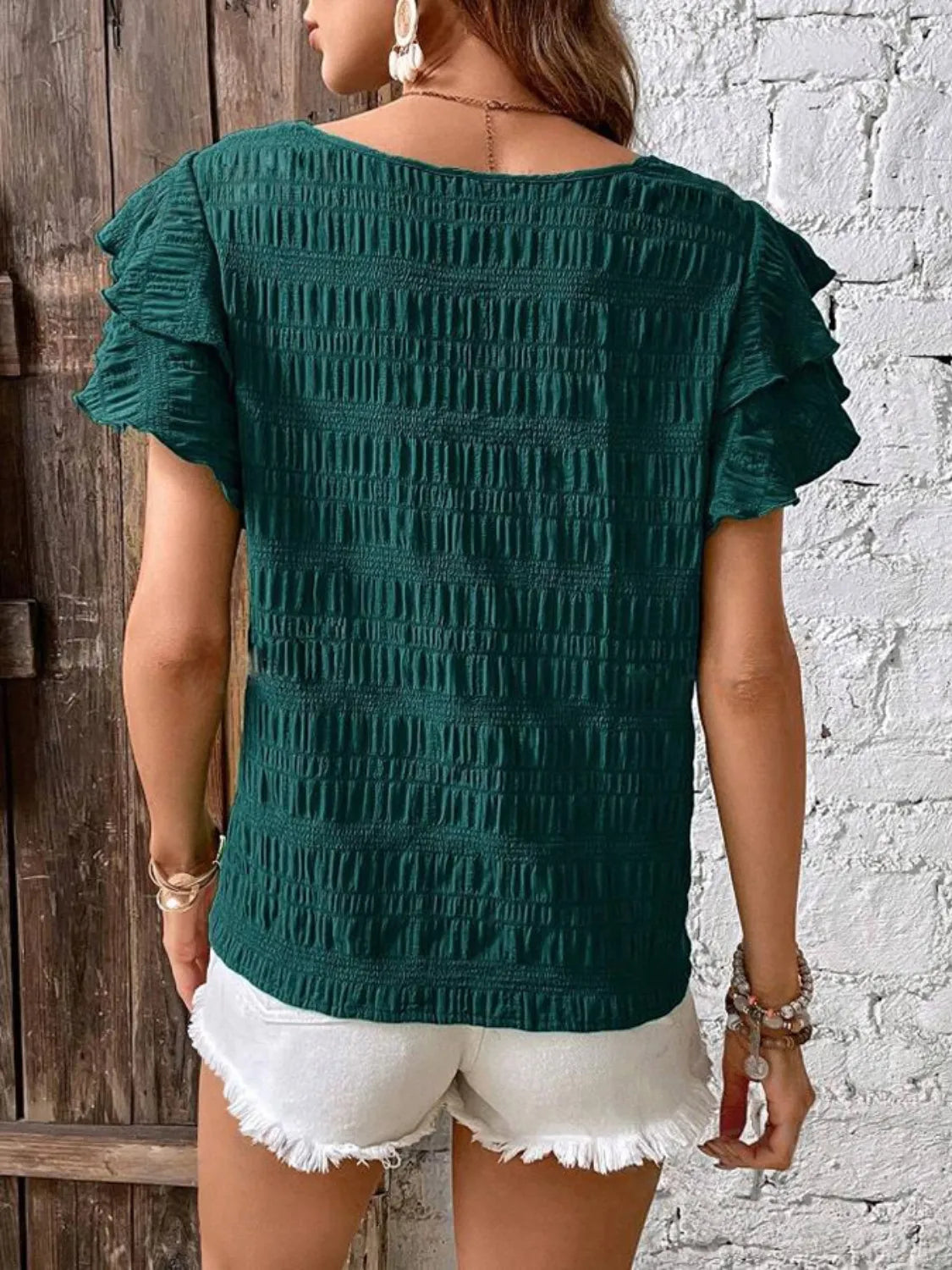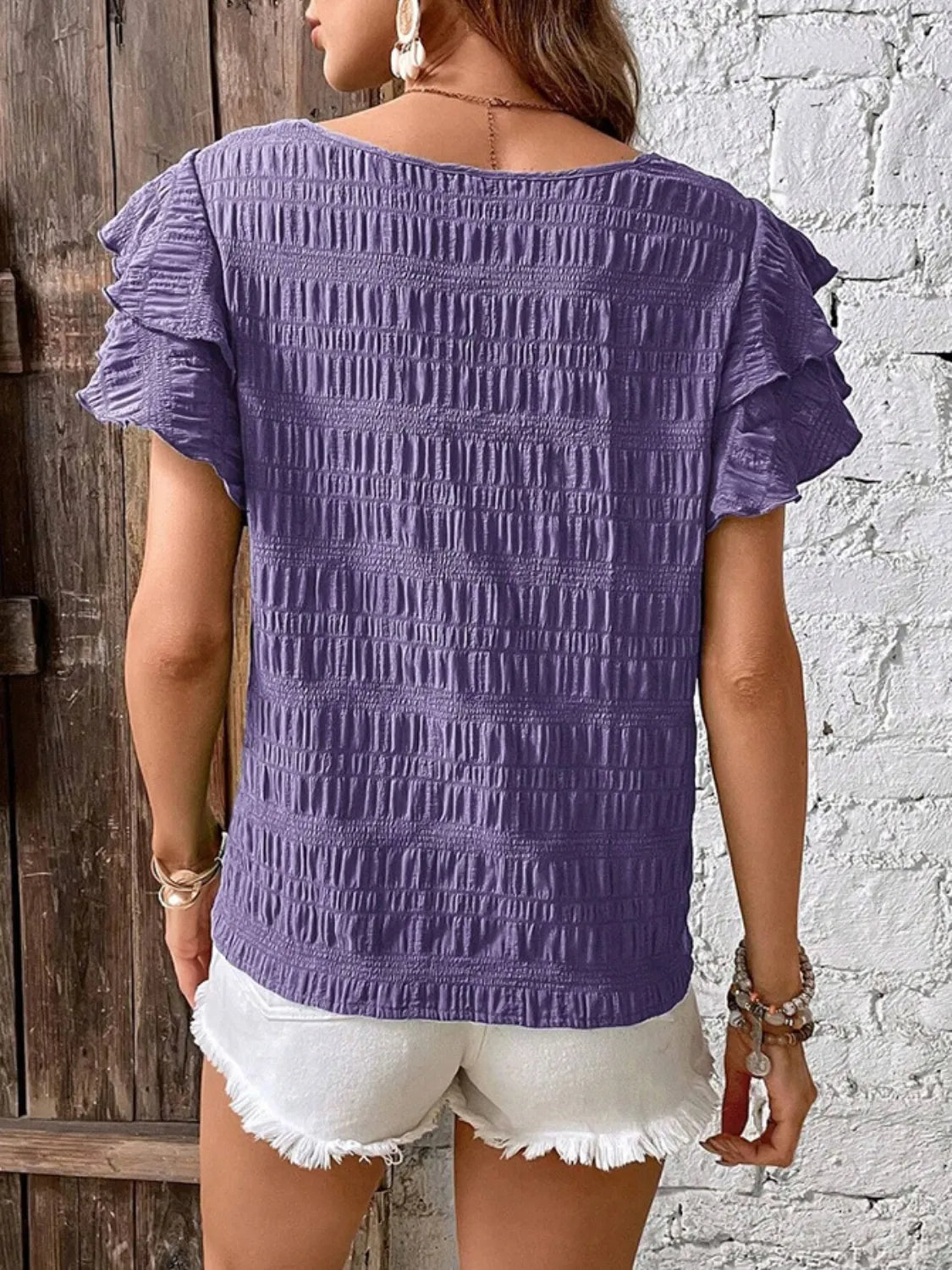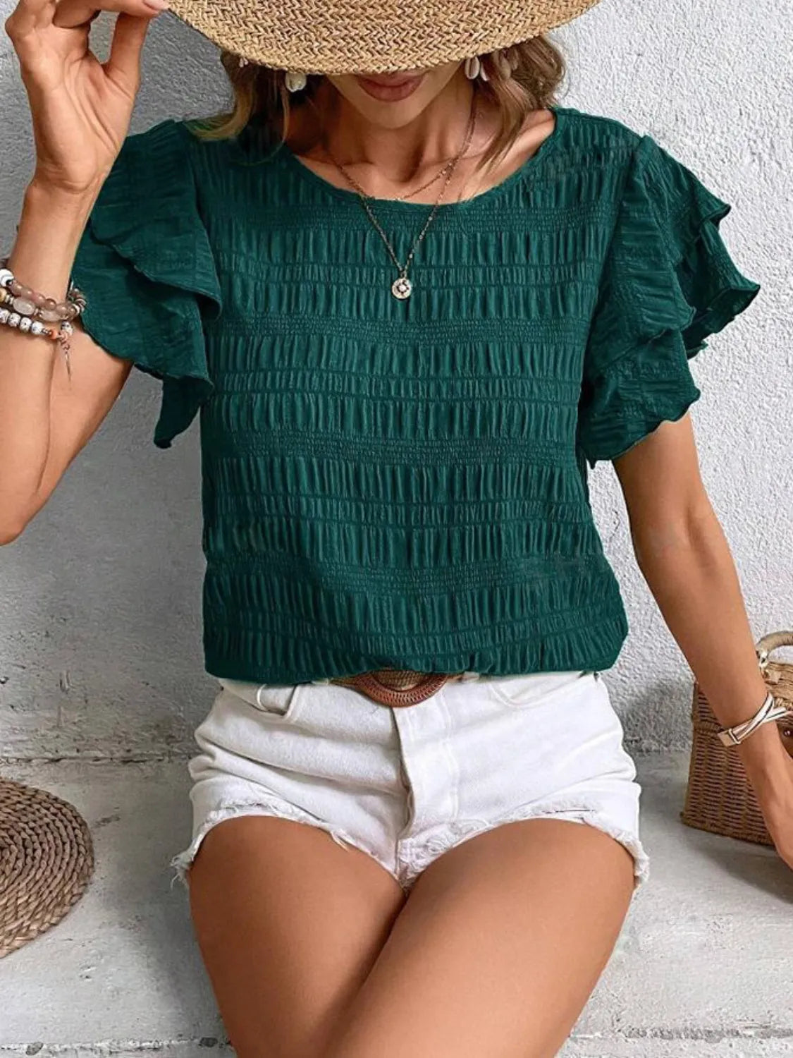 Round Neck Ruffled Short Sleeve Top