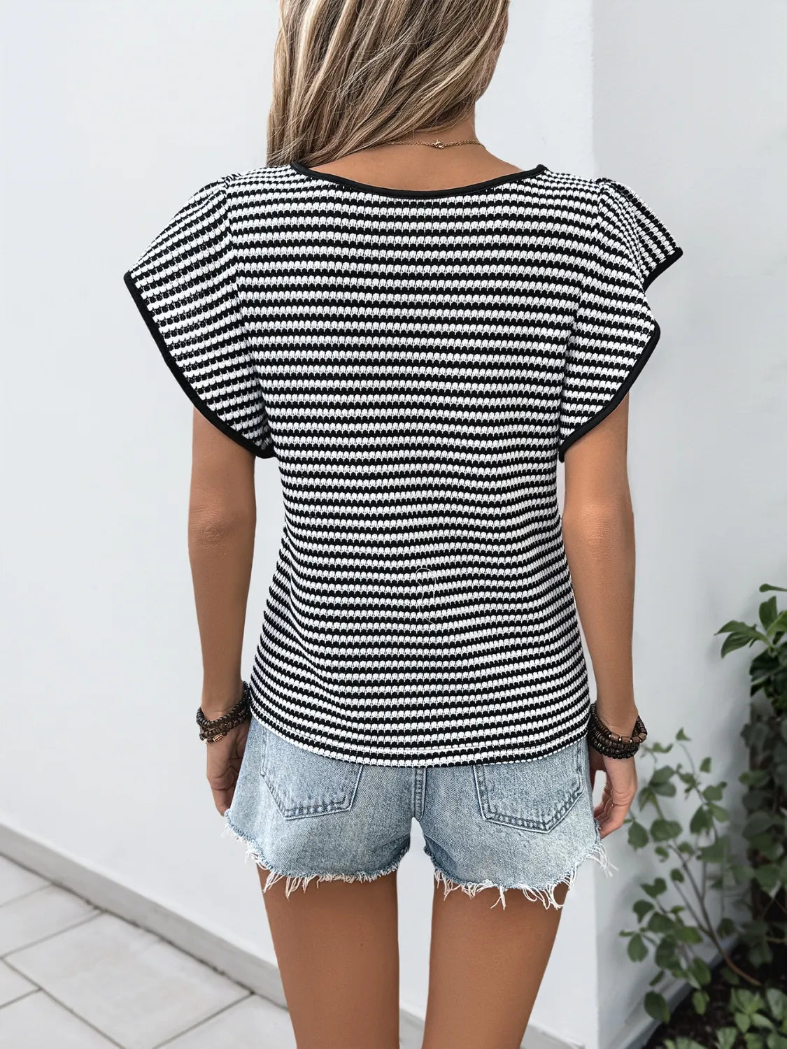 Ruffled Round Neck Short Sleeve Top