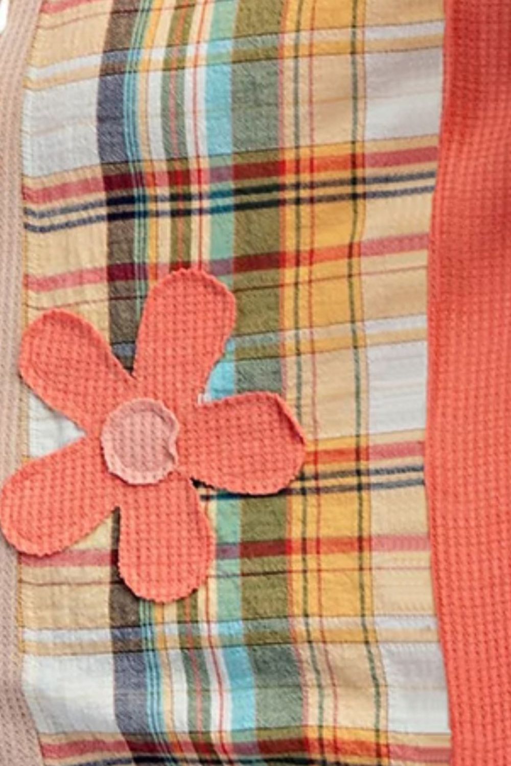 Slit Plaid Round Neck Long Sleeve Sweatshirt