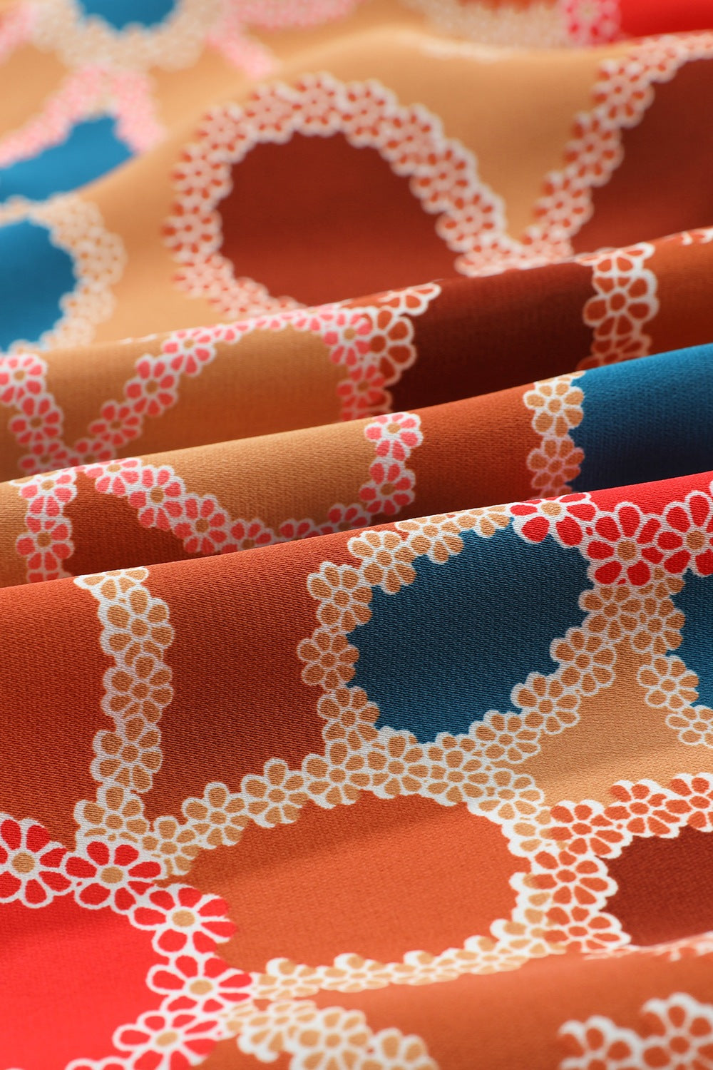 Smocked Printed V-Neck Half Sleeve Blouse