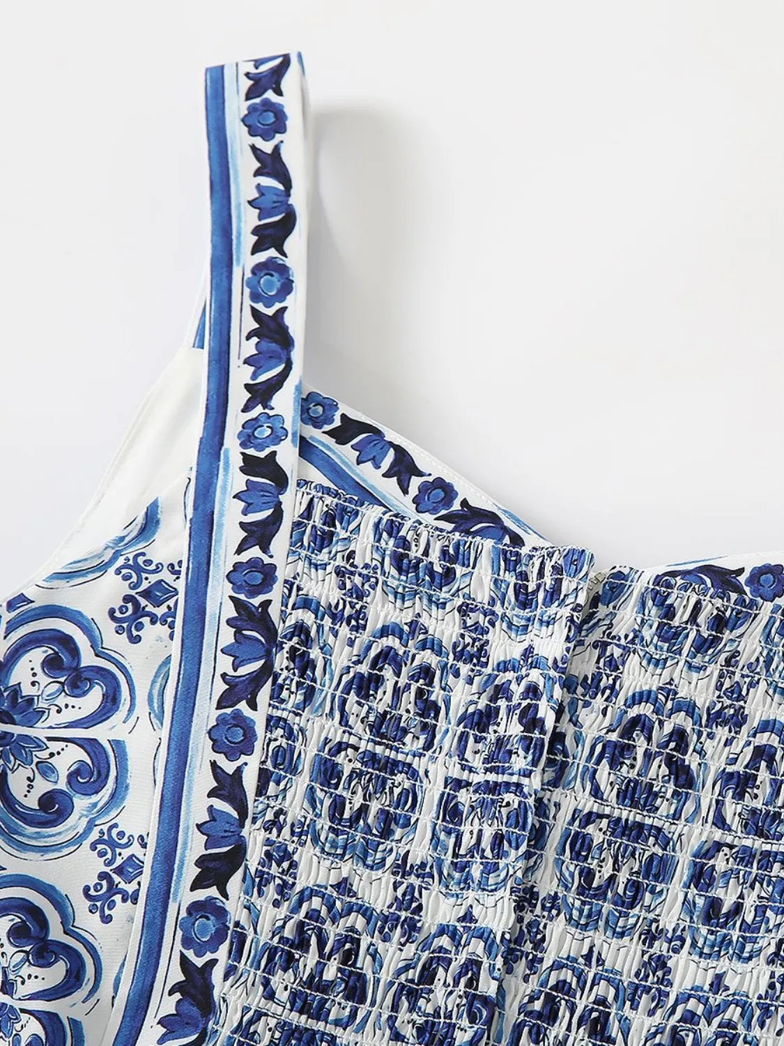 Smocked Printed Wide Strap Dress