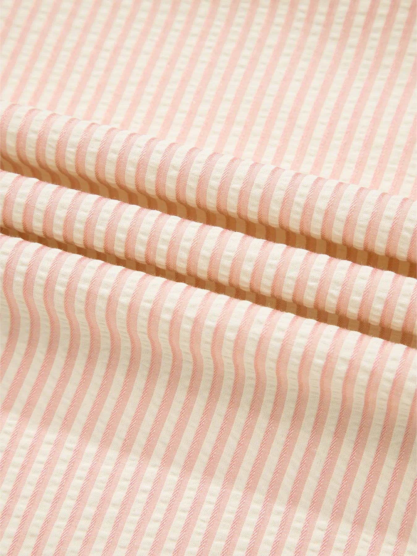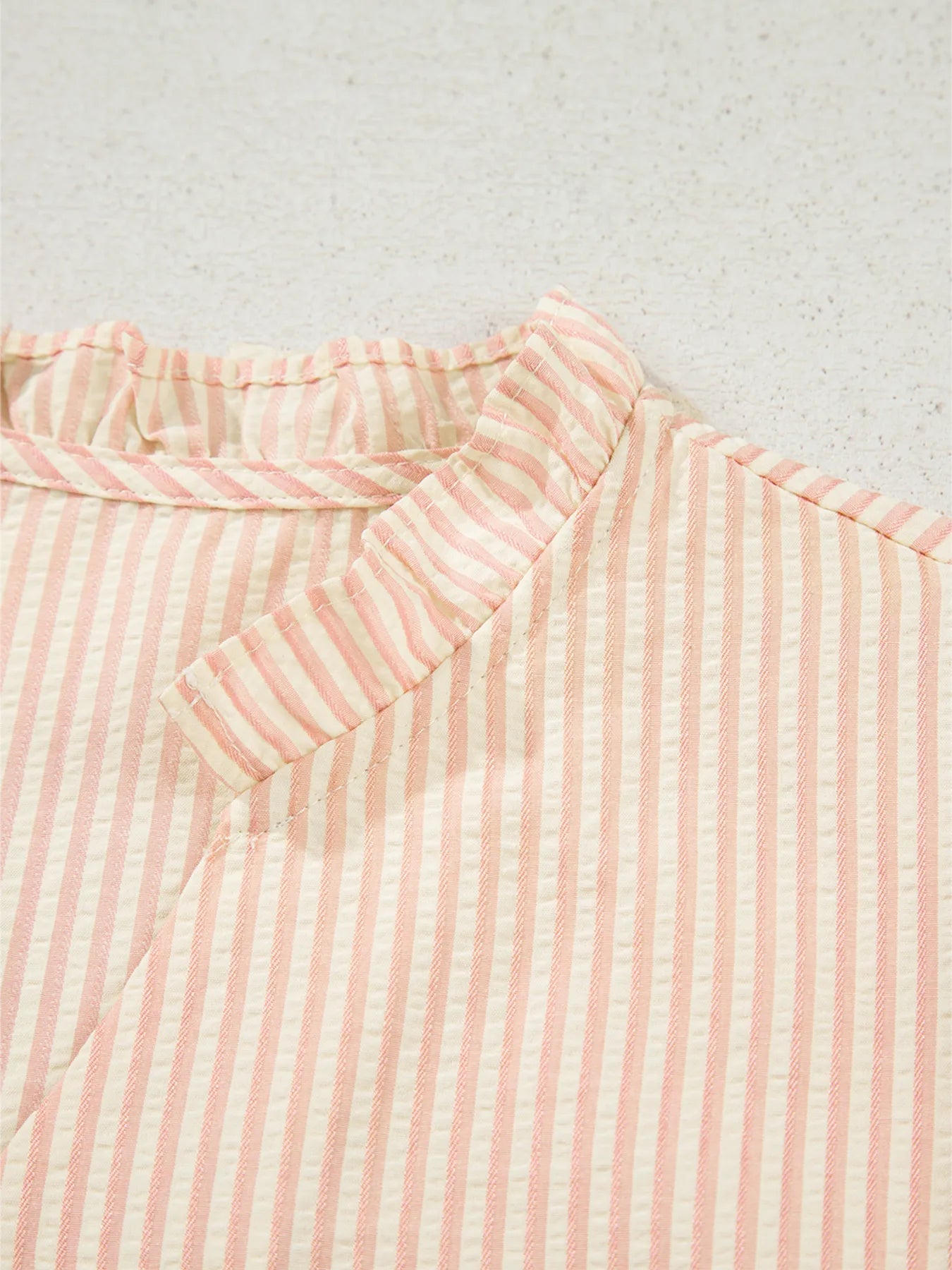Stripe Bow Knot Cuff Pearl Embellished Puff Sleeve V Neck Blouse