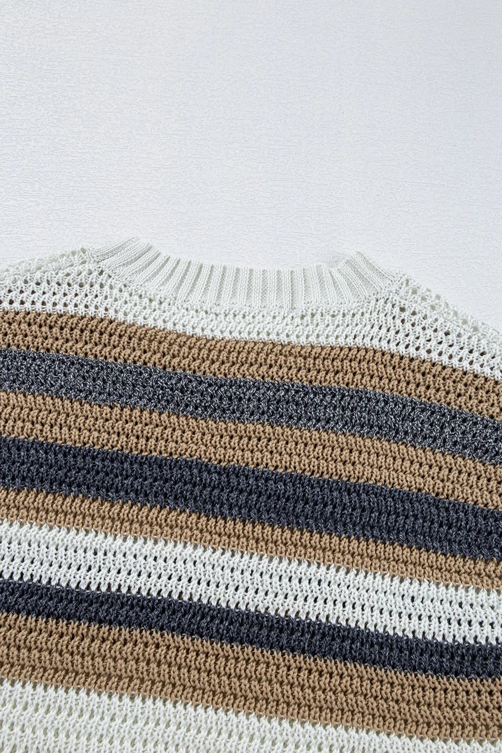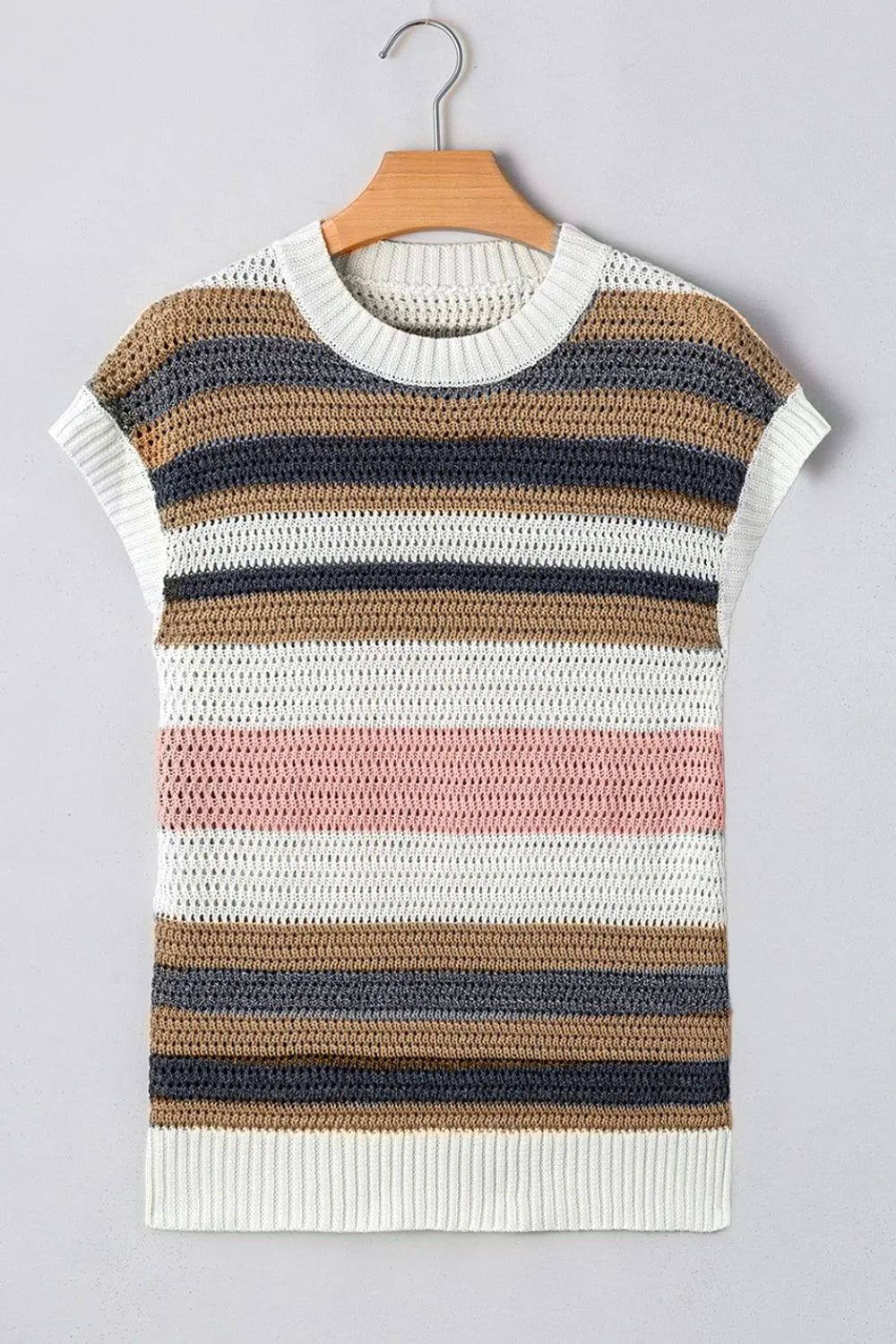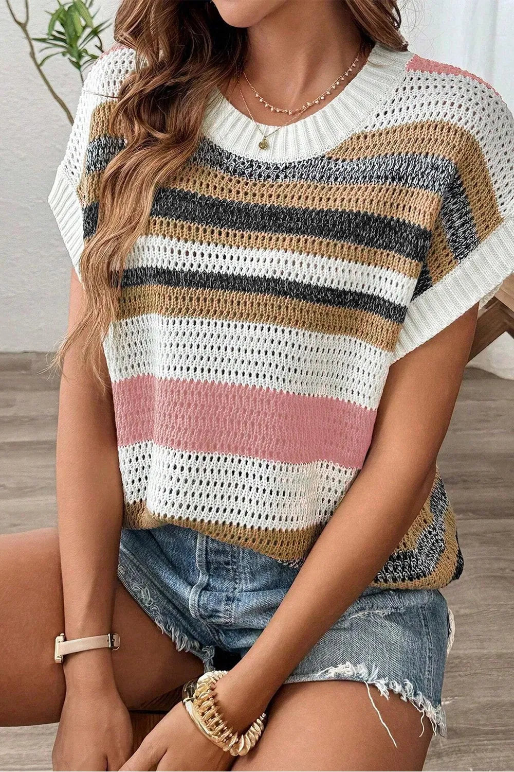Stripe Color Block Eyelet Knit Short Sleeve Knit Top