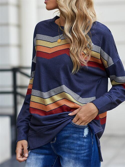 Striped Dropped Shoulder Slit Sweatshirt