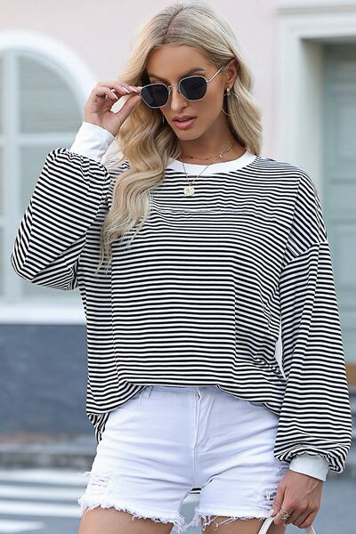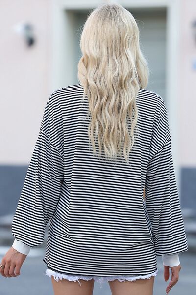Striped Round Neck Dropped Shoulder Sweatshirt